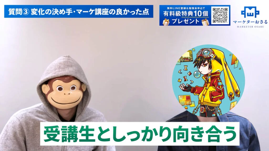 おさる:講座を選ぶ基準も大事ですよね。「誰から学ぶか」で結果が全然変わると思います。
