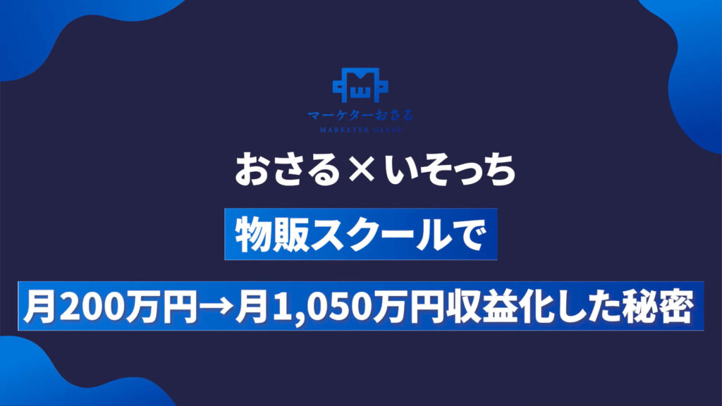 おさる:現在、物販スクールには講師が多くいると思うんですが、発信を担当しているのはいそっちさんだけなんですよね?