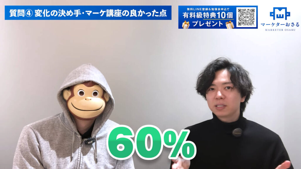 おさる:なるほど。講座をとおしてどんなふうに改善したんですか?