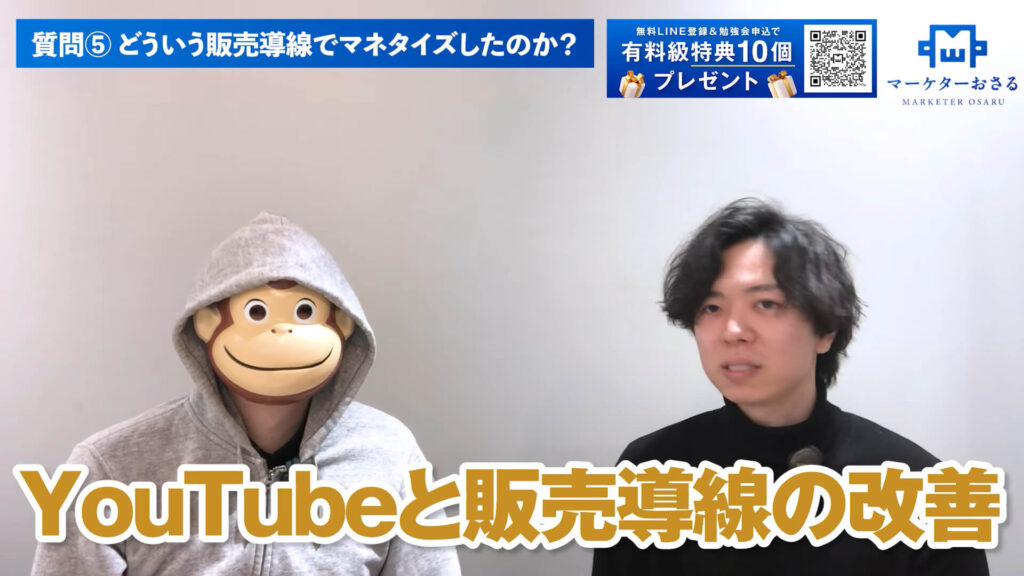 いそっち:そうです。受講前はYouTubeで集客して、個別相談につなげるだけでした。個別相談で売れなければ、それで終わりって感じでした。