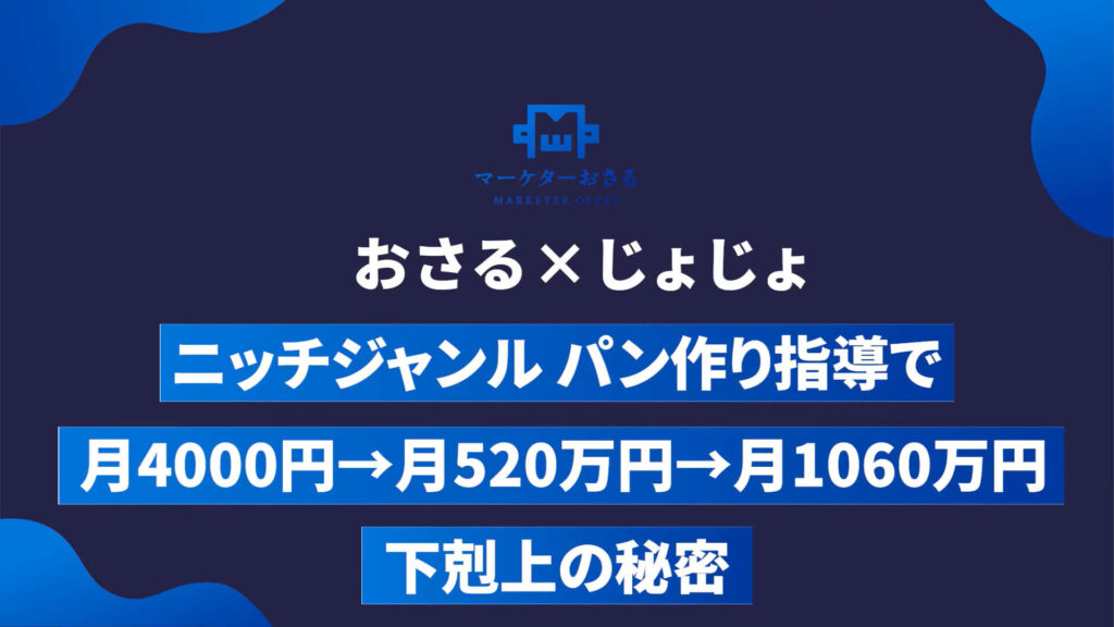 じょじょさんは、会社員時代の悩みから「自分で自由に働く道」を模索し、おさる講座を受講。マーケティング未経験ながらも地道に行動を積み重ね、パンというニッチなテーマでありながら、大きな成果を出すことに成功しました。ニッチジャンルでの収益化は難しいと思われがちですが「届け方」「売り方」の設計次第で、十分に可能であることがわかります