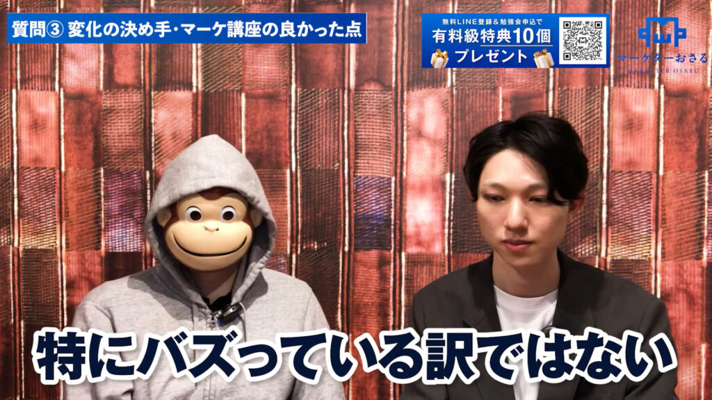 おさる:月4,000円から1,060万円って、もはや下剋上ですね(笑)。最初に講座に入るときはどういう心境だったんですか?