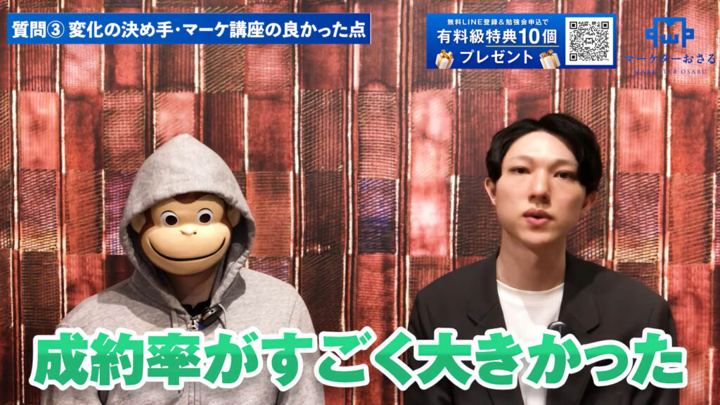 おさる:個別相談の成約率、毎回すごい数字を叩き出してますよね。