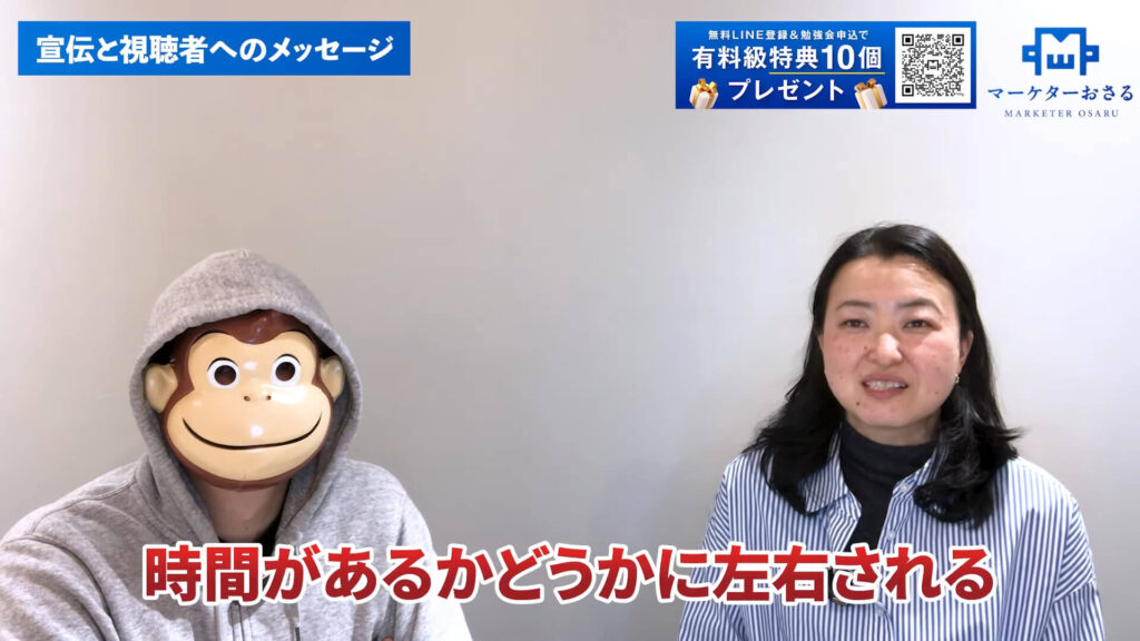 カオル:マーケティングをちゃんと学ばなきゃと思ってYouTubeで検索していたときに、おさるさんの動画がポンっと出てきて。この人何者?って思って、そこから何本も見ました(笑)。
