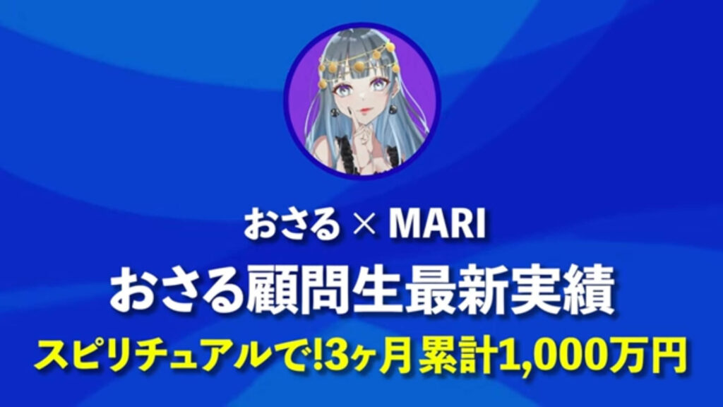 おさる:簡単にMARIさんを紹介させていただきます。霊視鑑定とスピリチュアルで稼ぐ養成講座をしており、Instagramのフォロワーは950名ほどです。