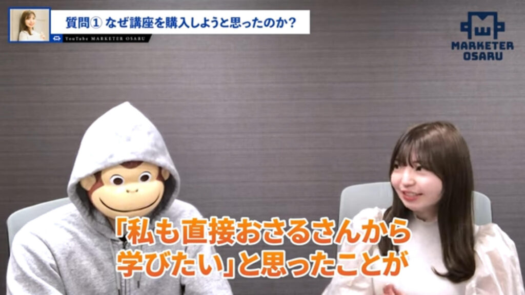 おさる:今回は僕らとは少し違う畑から講座に来ていただいたという印象ですが、なぜ僕の講座を購入したのかいかがでしょうか?