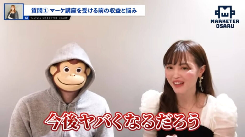 おさる:次の質問ですが、マーケティング講座を受ける前はどのぐらいの収益だったのか教えていただけますか。
