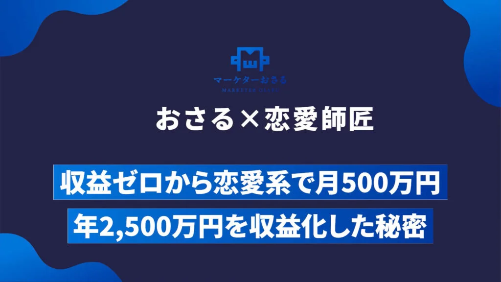 「収益ゼロから恋愛系コンテンツで月商500万円、年間2,500万円を達成!」そんな驚異の実績を持つ受講生・恋愛師匠さんに、おさるがインタビュー。恋愛市場を切り拓きながら、SNS×コンテンツ販売で大きな成果を出したリアルな体験談をお届けします。