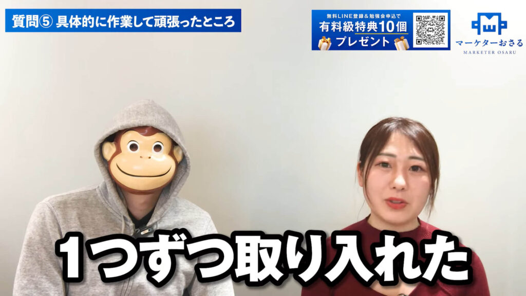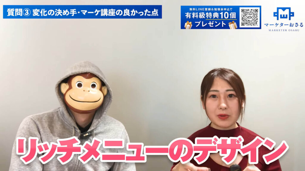 おさる:実際に講座に入ってみて、どんな部分を参考にしましたか?