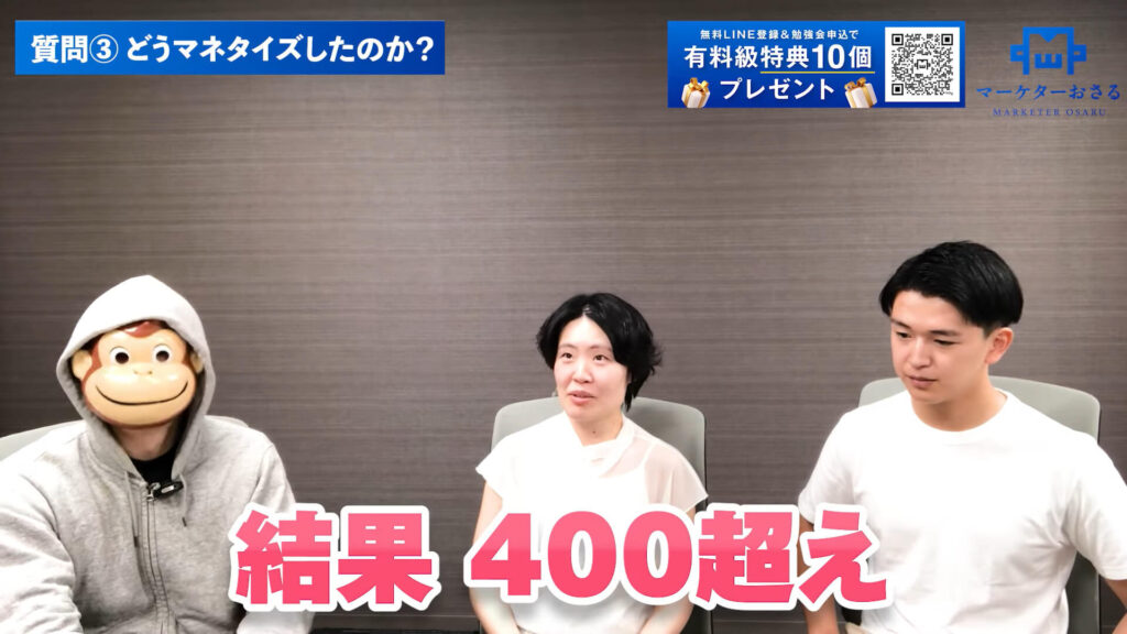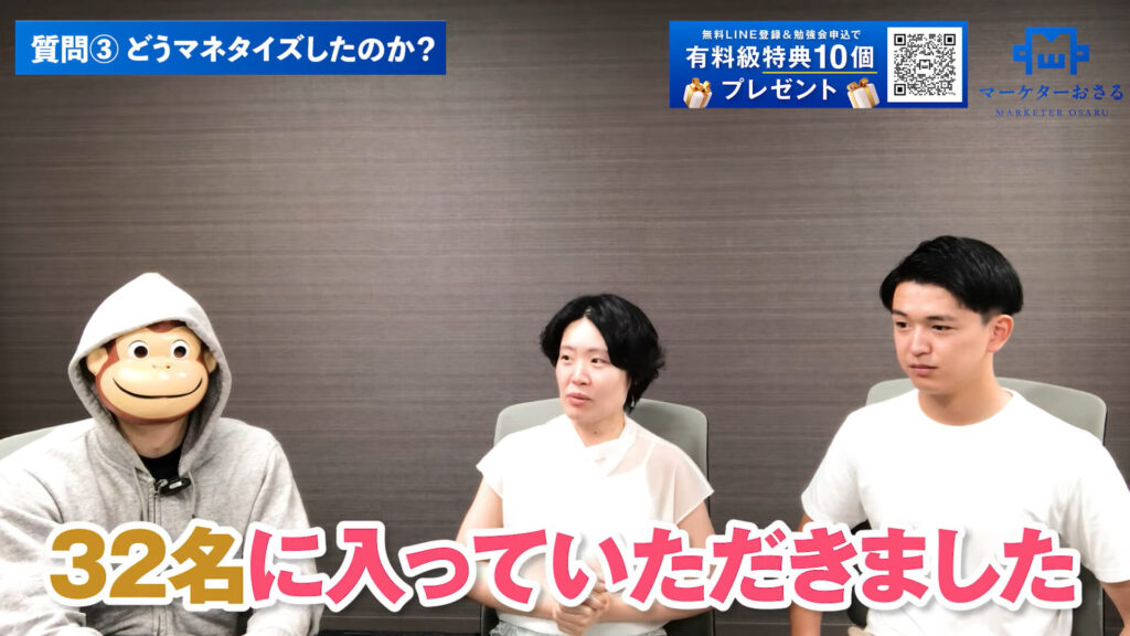 おさる:僕の講座には、コネクトサークルっていう無料のマッチングの場があって。今回のように成果が出て本当に嬉しいです。