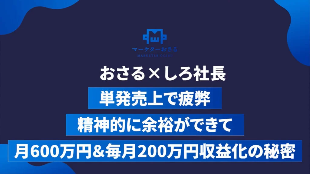 「売上はあるのに、なぜか心が苦しい」単発の売上に頼るあまり、精神的にも時間的にも限界を感じていた方も多いのではないでしょうか?今回はそんな状況から脱却し、エバーグリーン導線の構築によって、月商600万円・安定月収200万円という成果を出されたしろ社長の対談インタビューをお届けします。