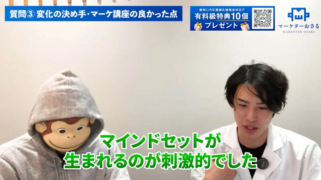 おさる:講座に入って特に良かったと感じたのは、どんな点でしたか?