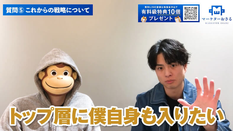 そら:はい。今も30万円くらいの月額契約を積み上げていて、それをベースに事業を拡大していく感じです。スクールではおさるさんの背中を追いかけて、3億、5億という単位で利益を出せる事業にしていきたいと考えています。