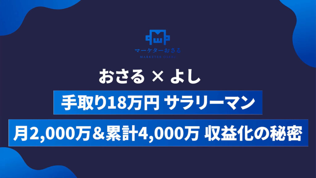 よし:よろしくお願いします。実は今回のローンチで月2,000万円、累計4,000万円を達成しました。会社員をしながらの副業ですが、今では会社の給料が“収入”と呼べないくらいの割合になってきました(笑)。