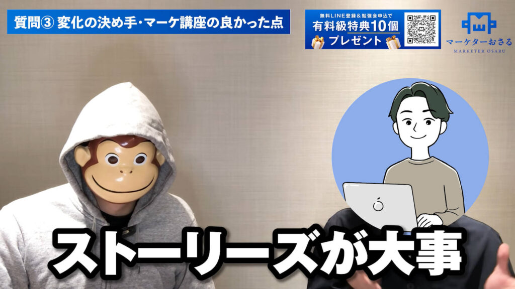 おさる:それで僕の講座に入ってくださったんですね。
