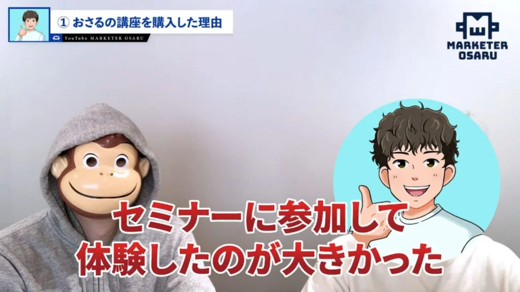 おさる:最初は入らないと決めていたけれども、僕のセミナーで入会しようと思ったということで、これは腕の見せ所でしたね。