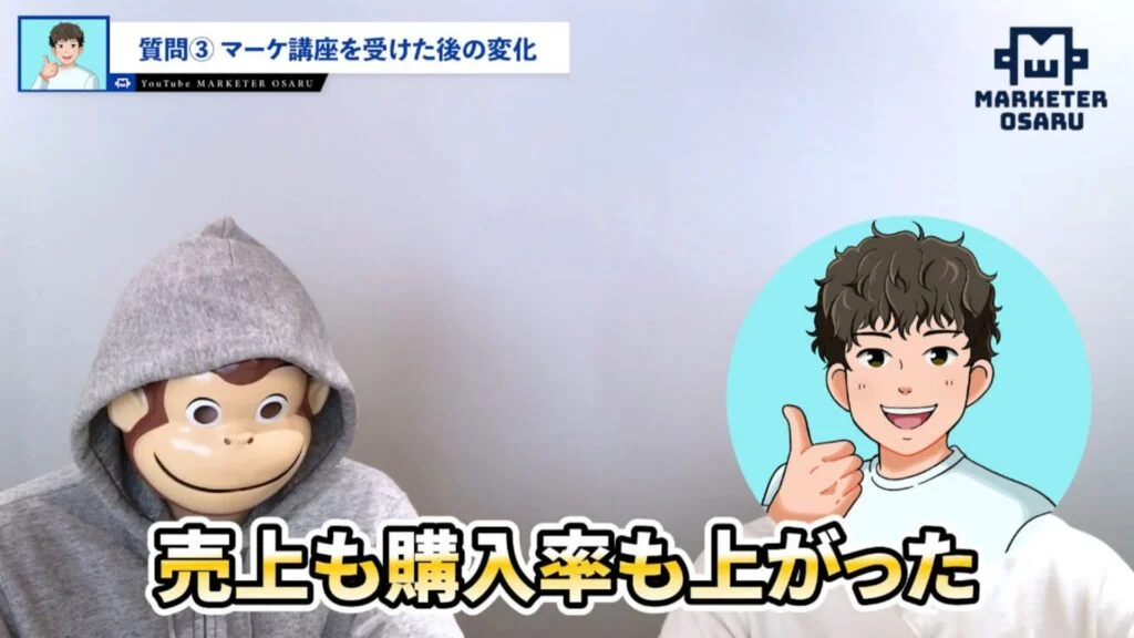 おさる:受講してみて変化したところということで、売上の部分はどう変化しましたか?