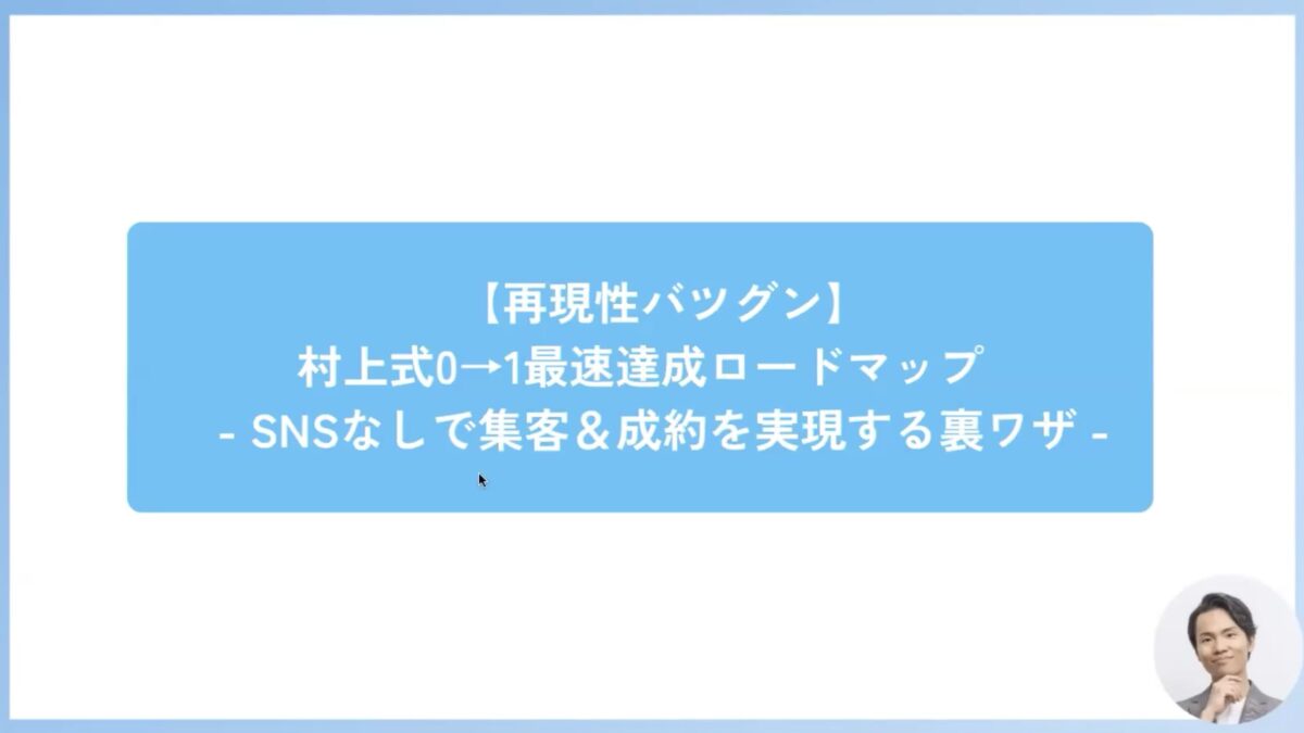 2026年2月13日(金)オンラインにて「村上式0→1最速達成ロードマップ-SNSなしで集客&成約を実現する裏ワザ-」を開催しました。