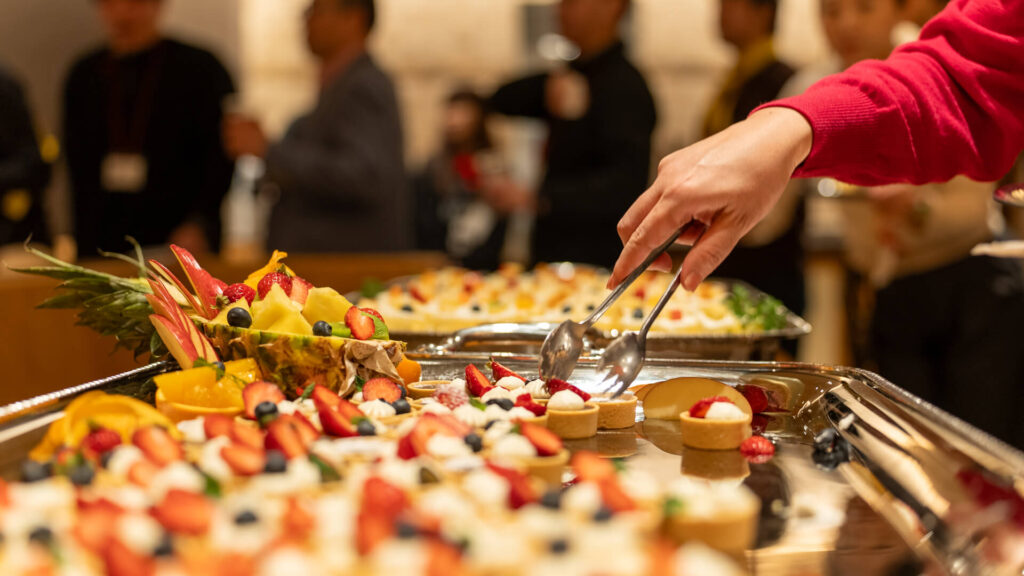 作業会後は300人オーバーの参加者みんなで懇親会。和洋中それぞれ専門のシェフ、パティシエのデザートの揃った料理もすべておさるが負担しますので受講生は完全無料です。