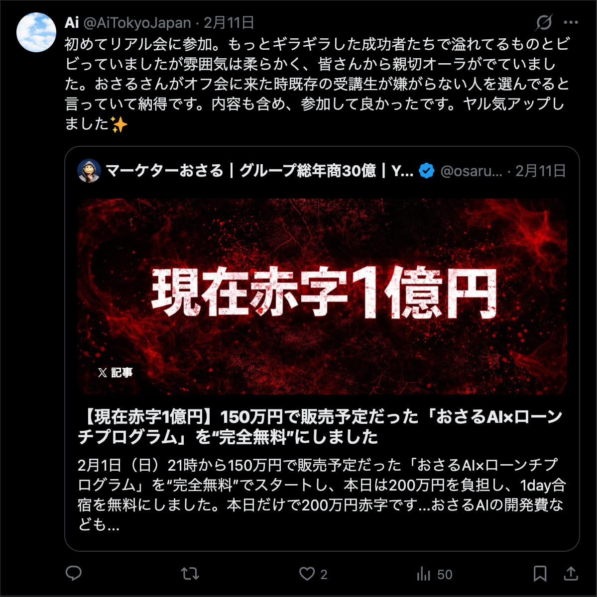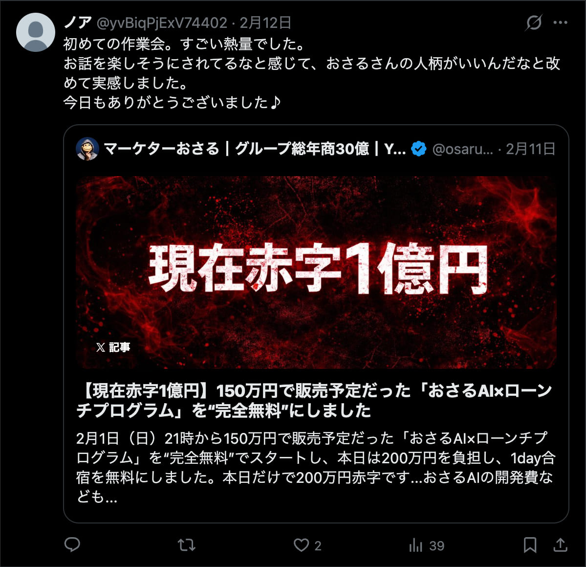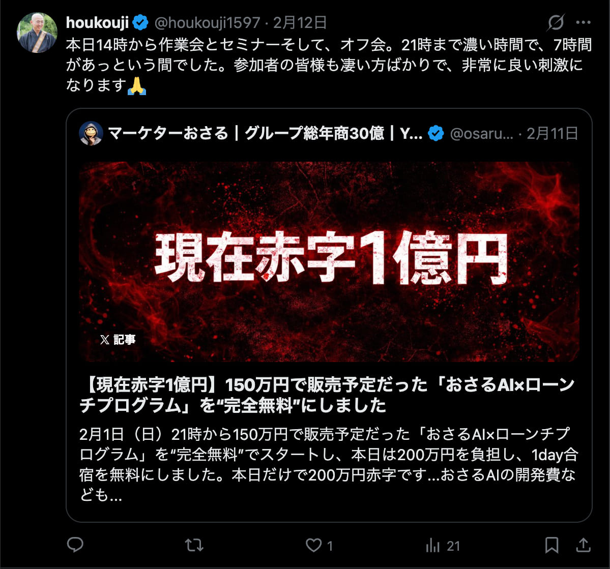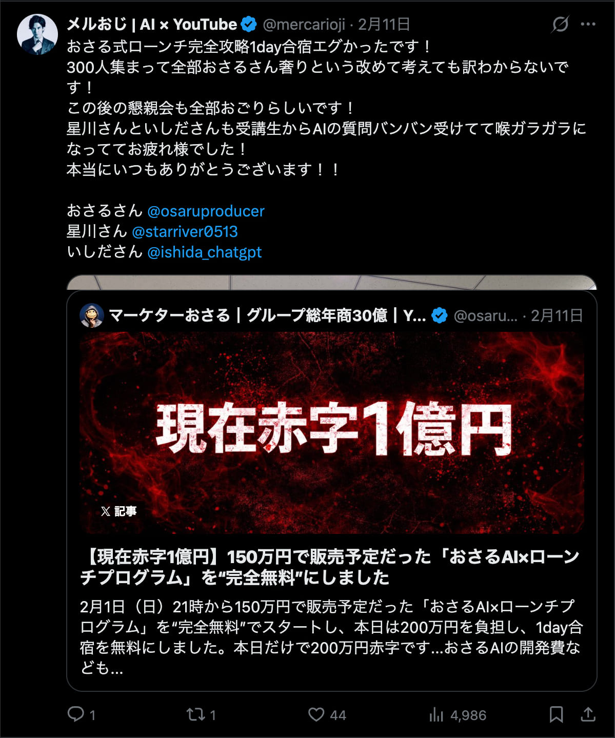 2026年2月11日(水)東京にて、オフラインの「おさるAI × ローンチプログラム1Day合宿」を開催しました。