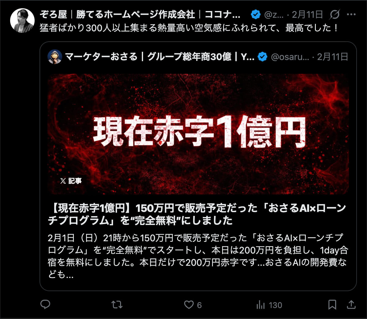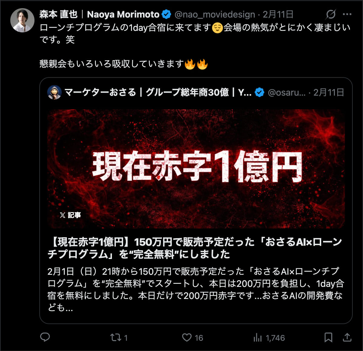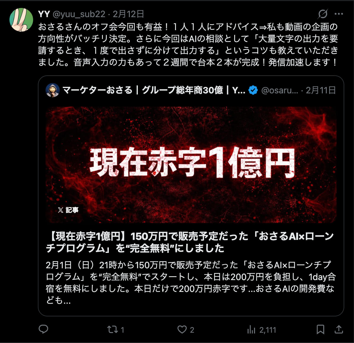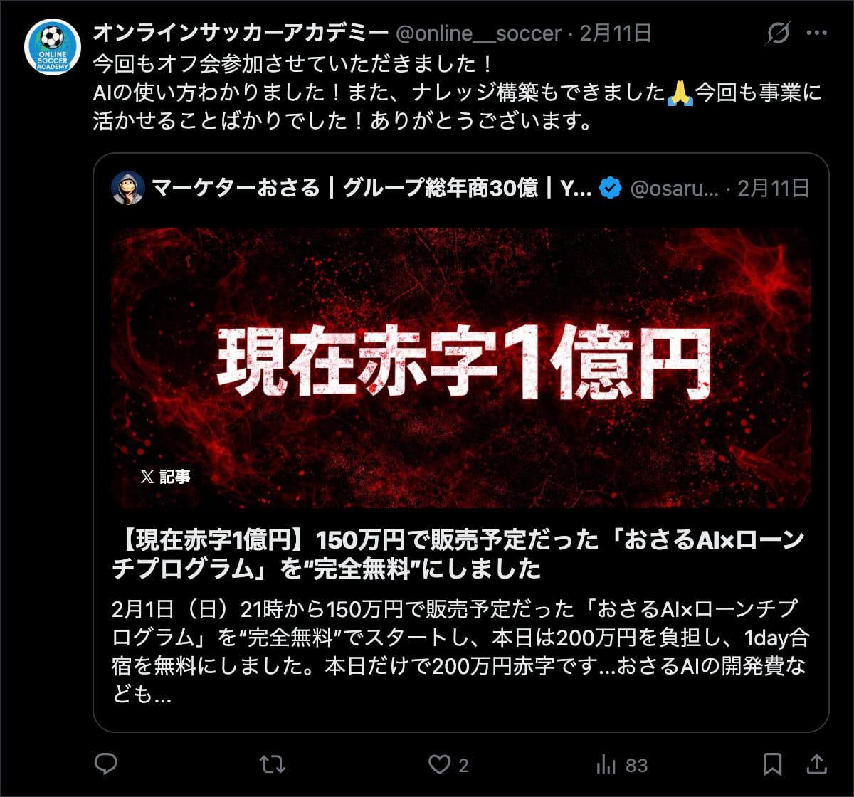 2026年2月11日(水)東京にて、オフラインの「おさるAI × ローンチプログラム1Day合宿」を開催しました。