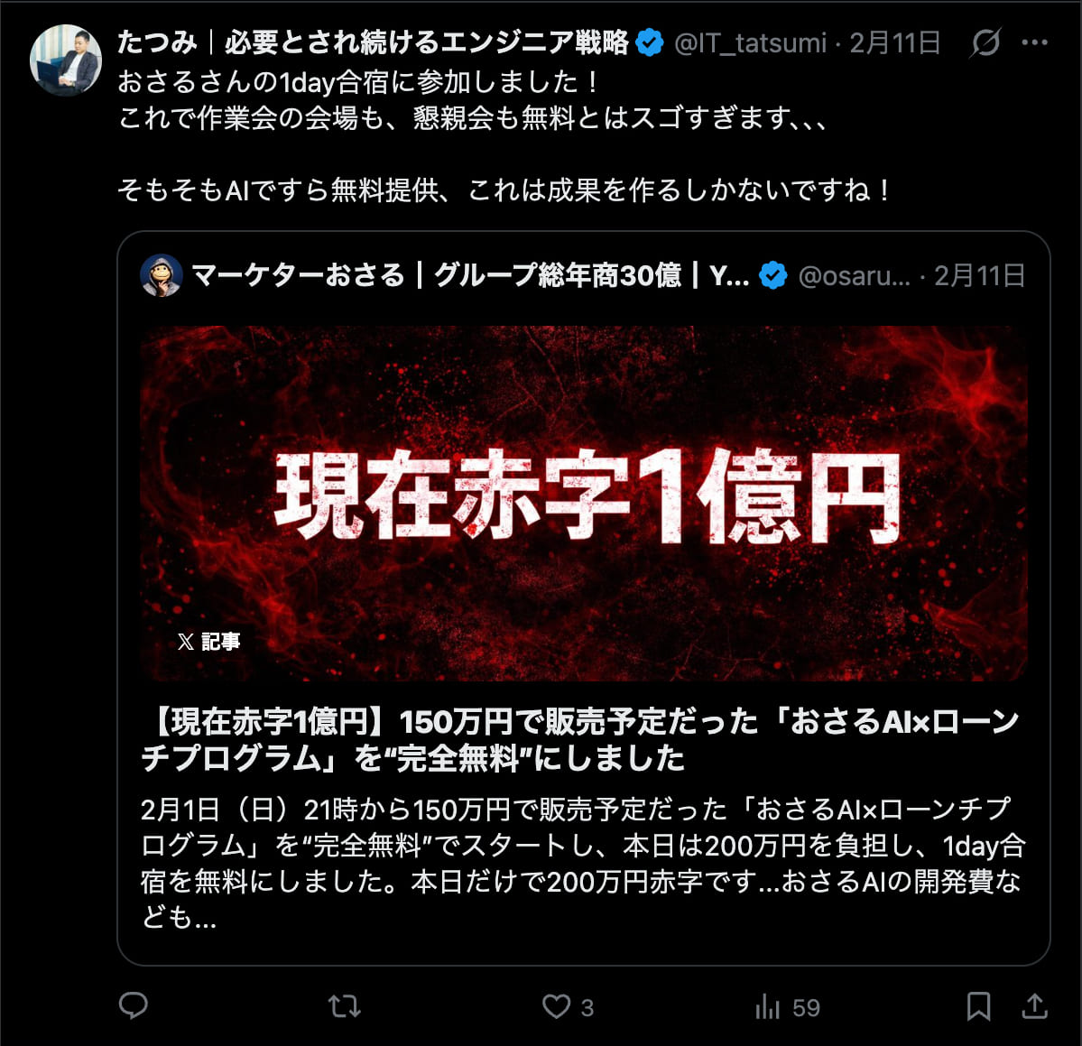 第3回 おさるAI × ローンチプログラム1Day合宿の詳細