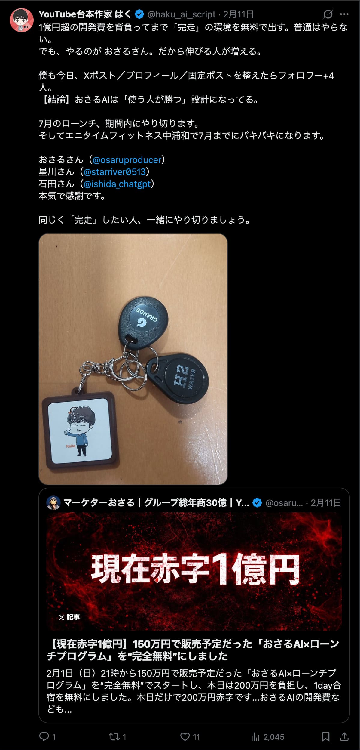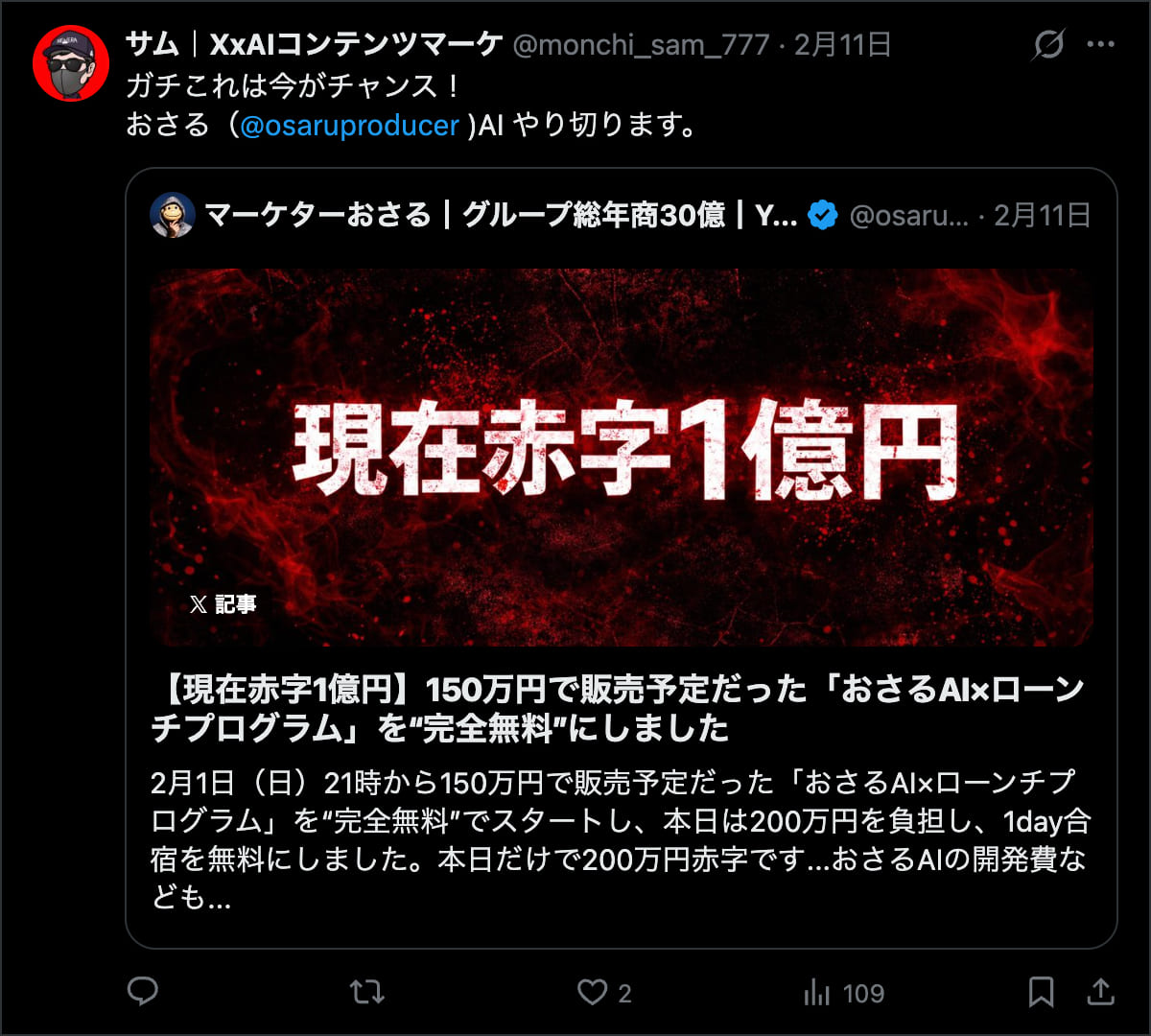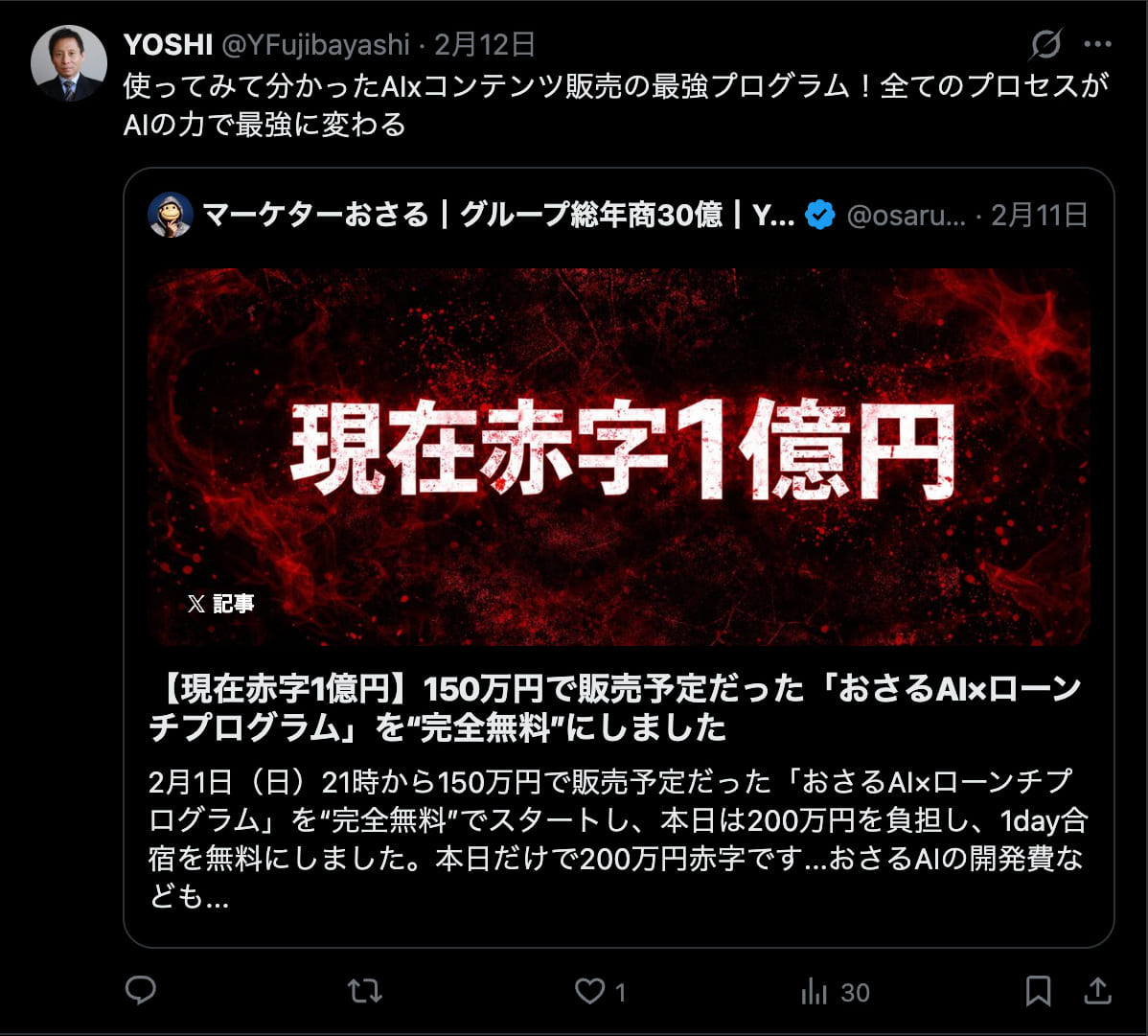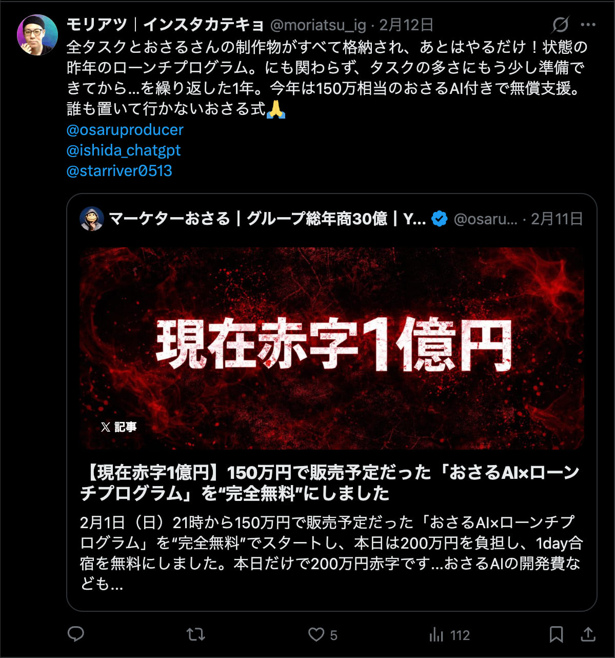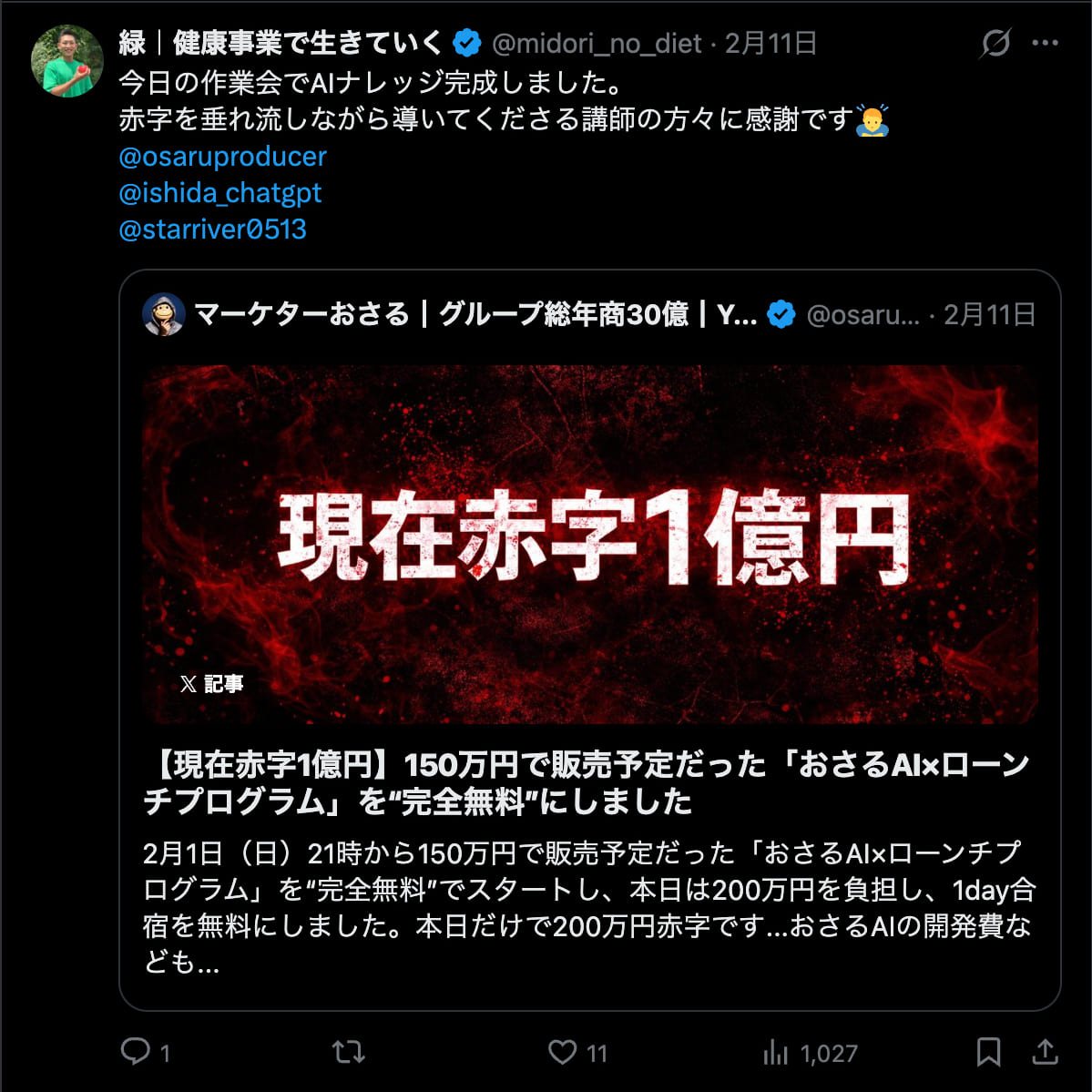 ただでさえ超強力なおさる式ローンチプログラムにおさるAIが追加