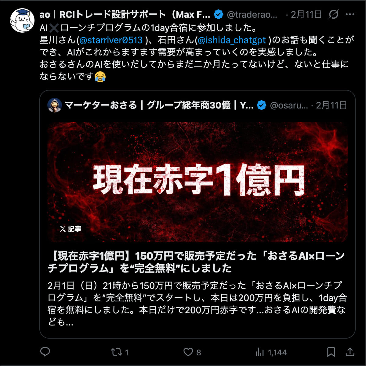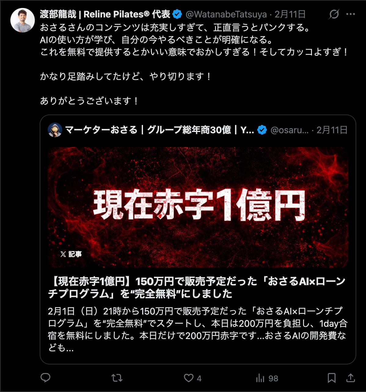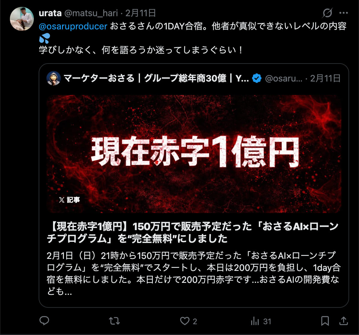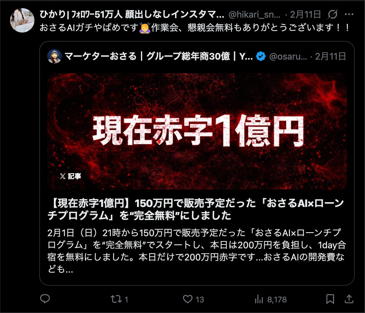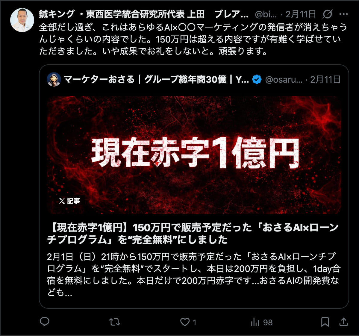 ただでさえ超強力なおさる式ローンチプログラムにおさるAIが追加