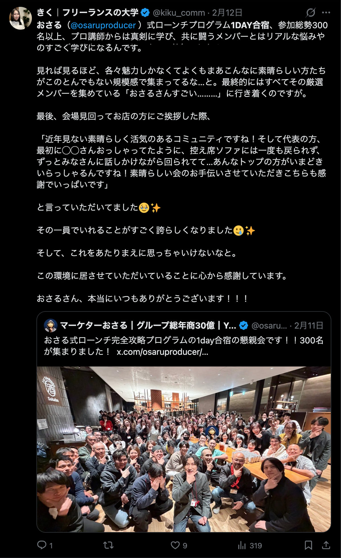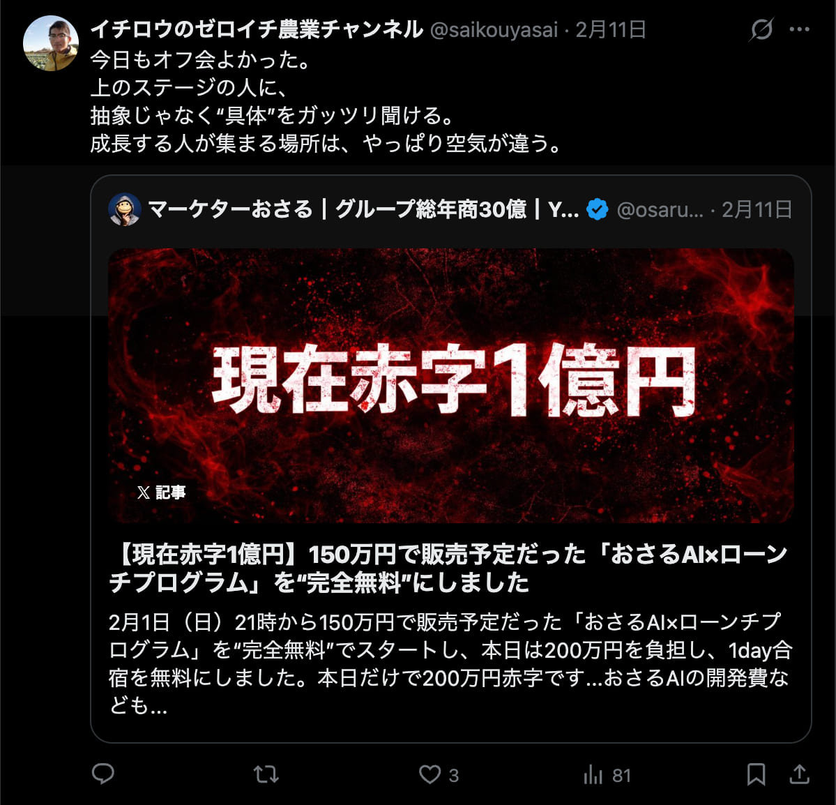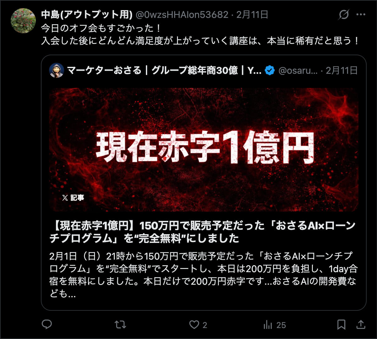 ローンチやAI活用は華やかに見えますが、裏側は泥臭い設計と、事実に基づいた改善の繰り返しです。今回は理論だけでなく、実際の画面を見ながら一緒に手を動かす時間を共有できたことが大きなポイントでした。