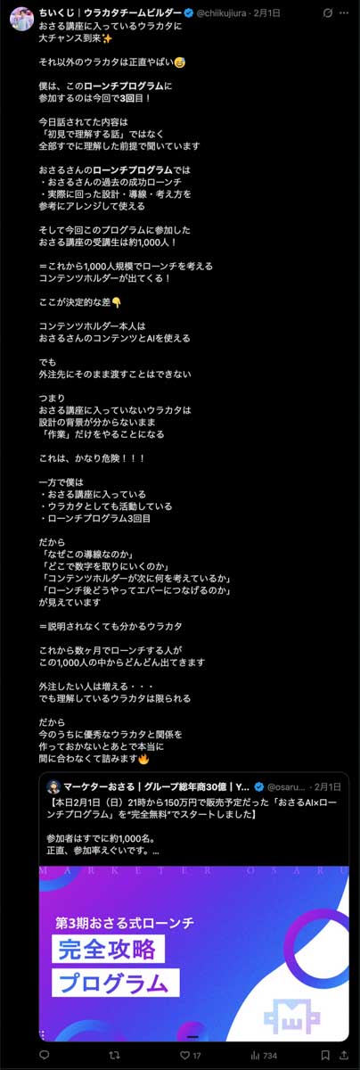 2月1日(日)21時より、「おさるAI×ローンチプログラム」をスタートしました。