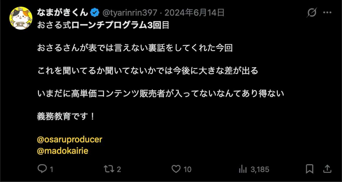 第1回目の講義では、2025年12月に9億円を売り上げた「おさる式ブートキャンプローンチ」を完全解説しました。