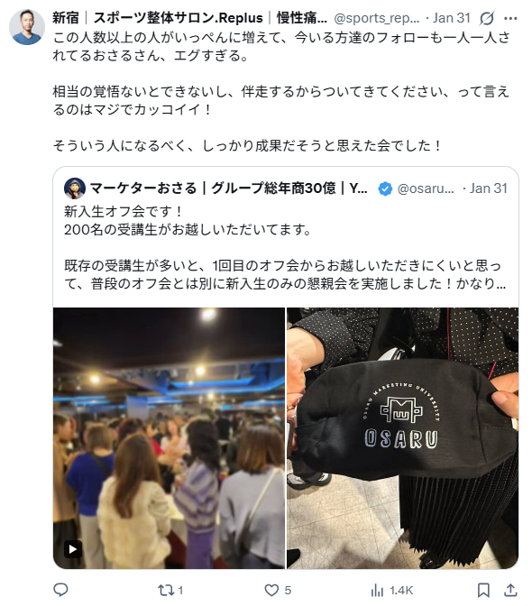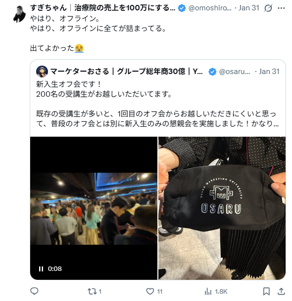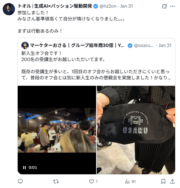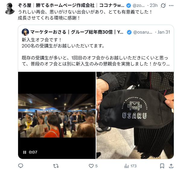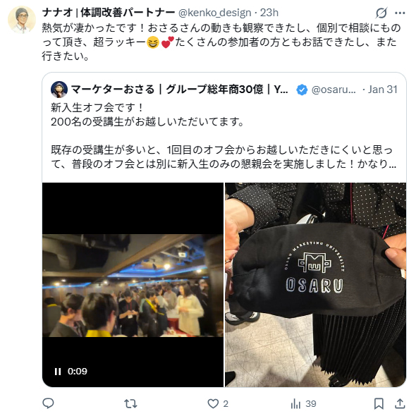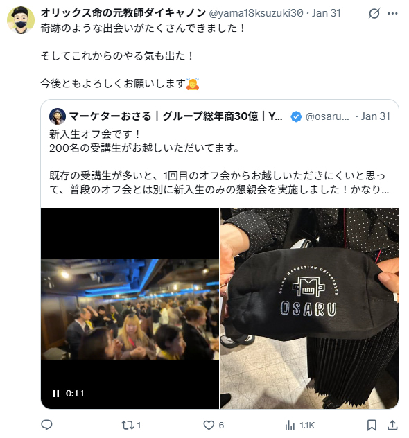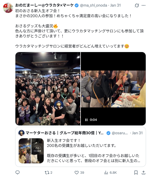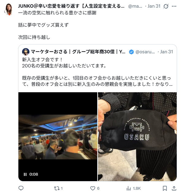 2025年12月におこなったローンチを経て、おさるマーケ講座には多くの方が新しく入会されました。