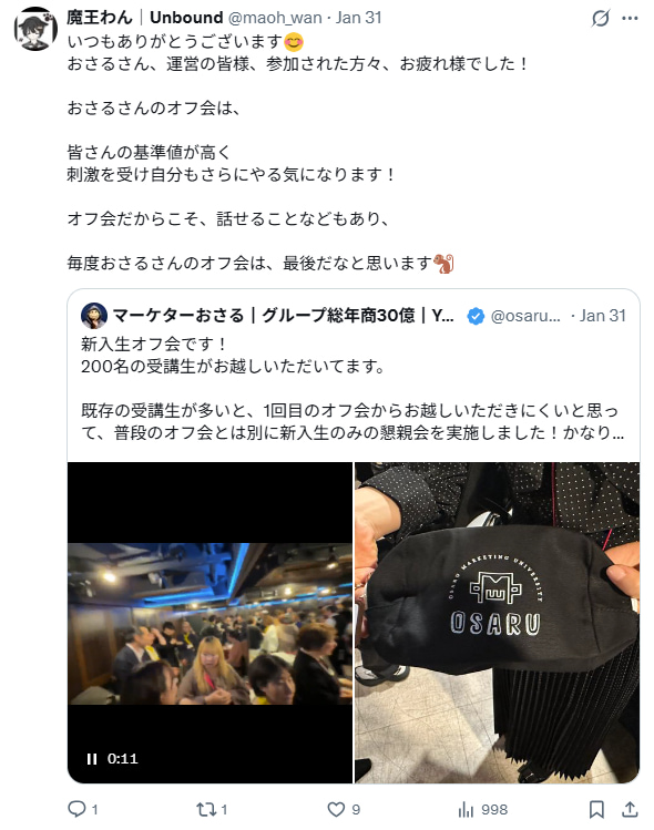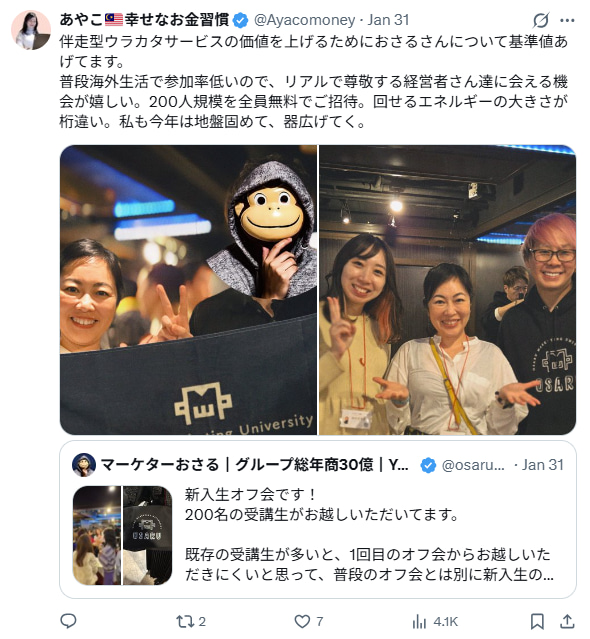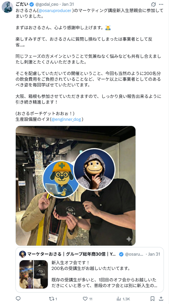 2026年1月31日(土)、東京銀座にて「おさるマーケ講座新入生&幽霊部員懇親会」を開催しました。