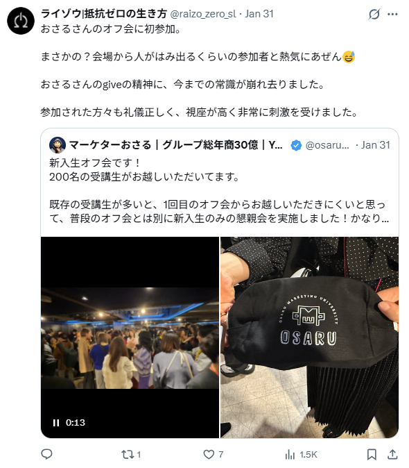 おさるマーケ講座では定期的にオフ会を開催しています。しかし、すでにコミュニティができあがっている場所に飛び込むのは、誰にとっても勇気がいるものです。
