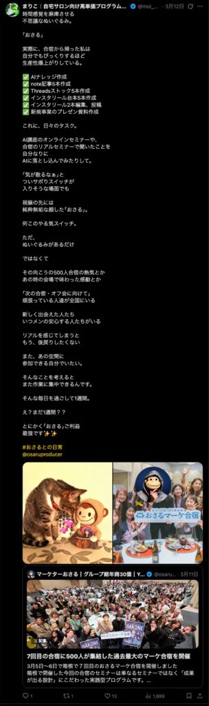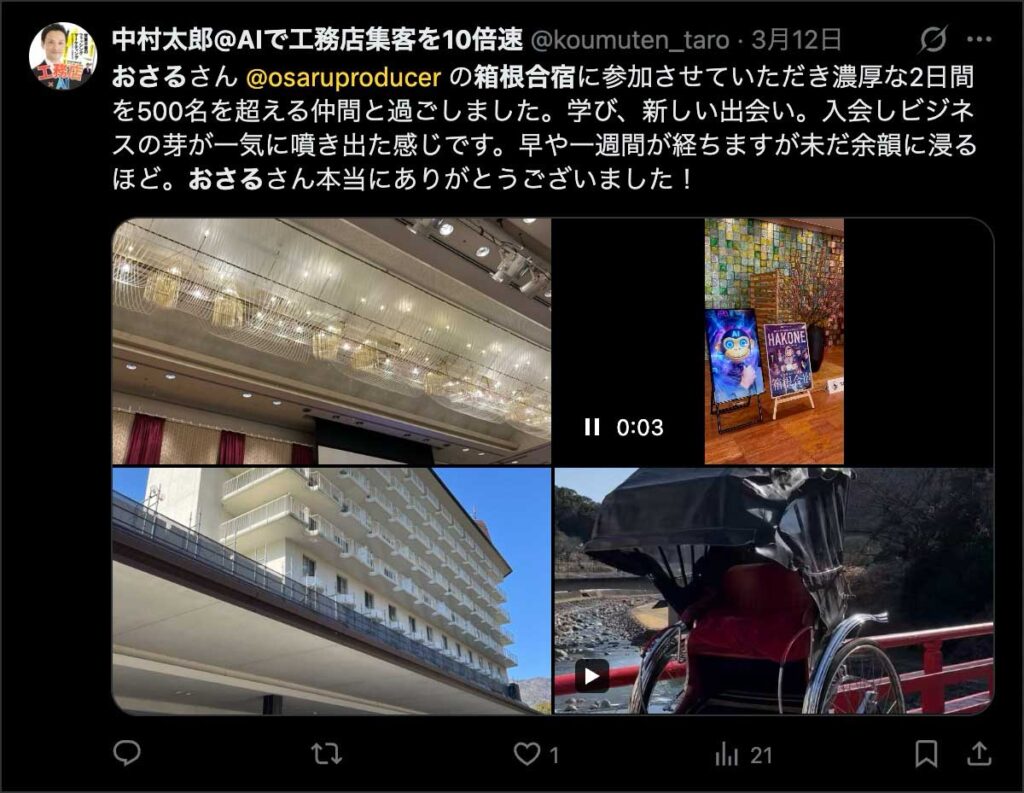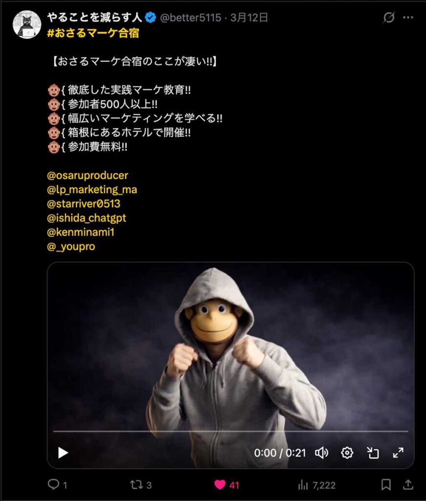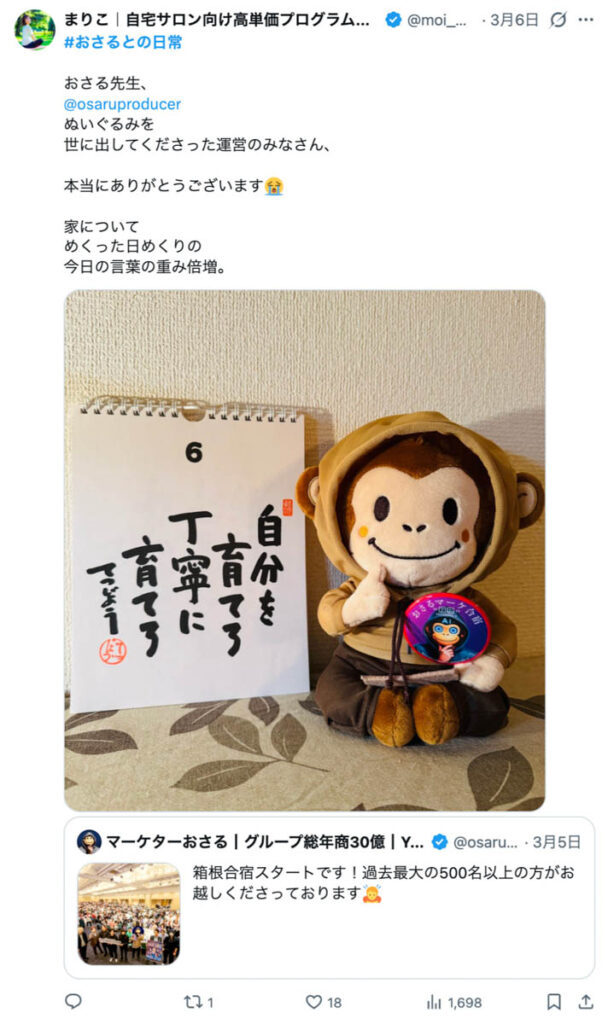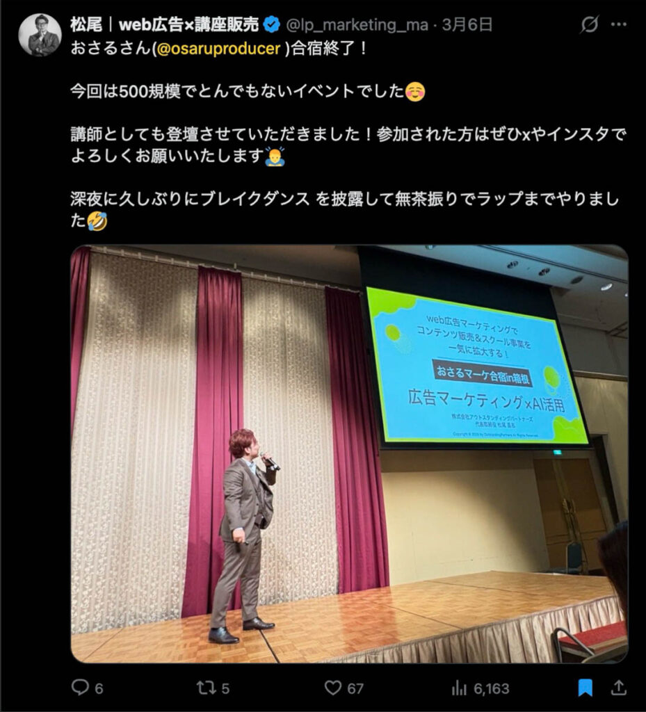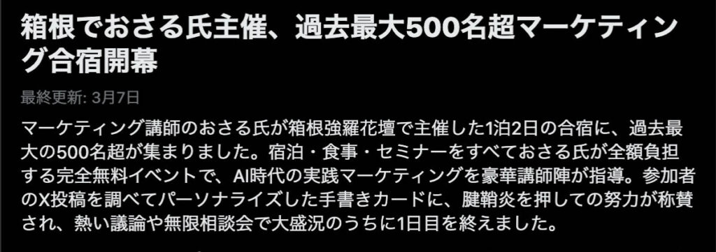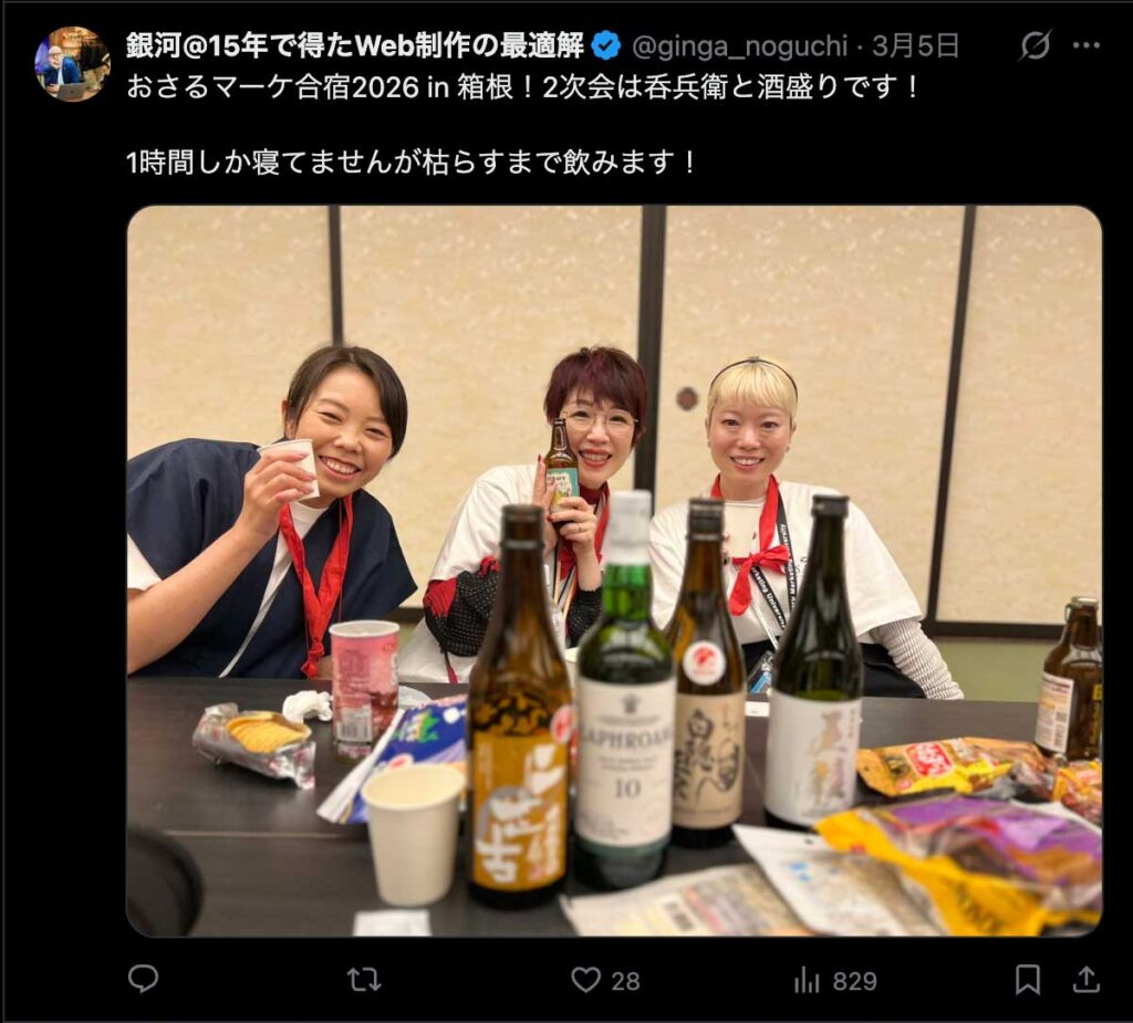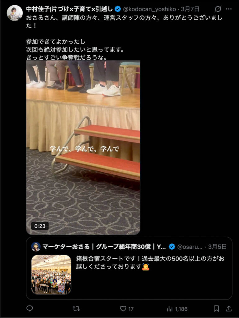 2026年3月5日-6日にかけて、箱根にて、おさるマーケ講座の合宿を開催しました。今回は過去最大規模の500名近い受講生を無料招待しました。
