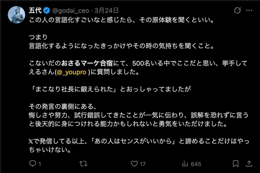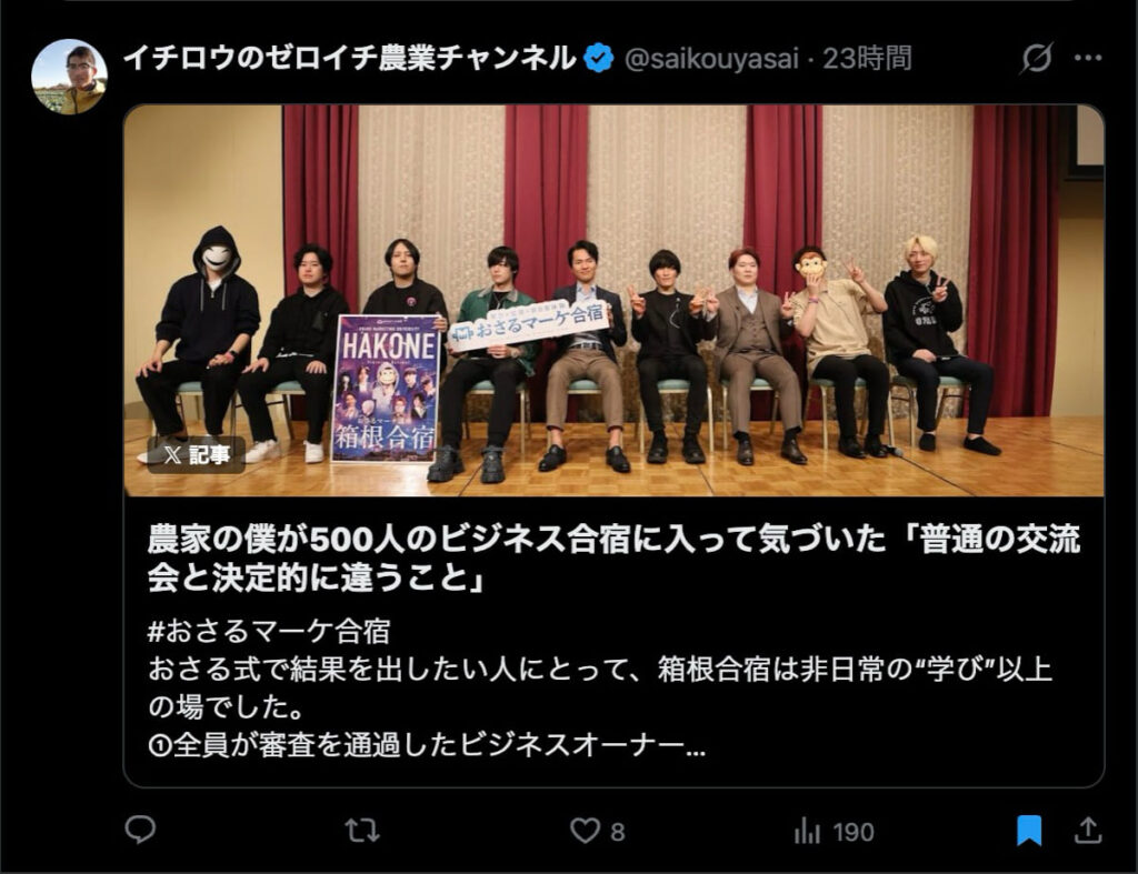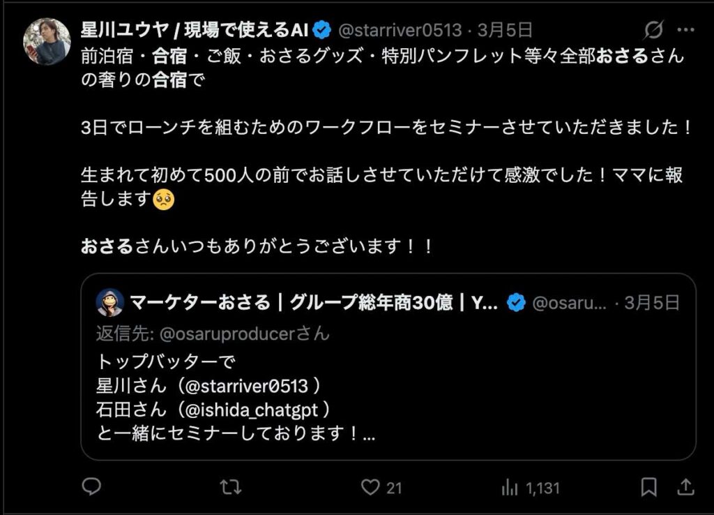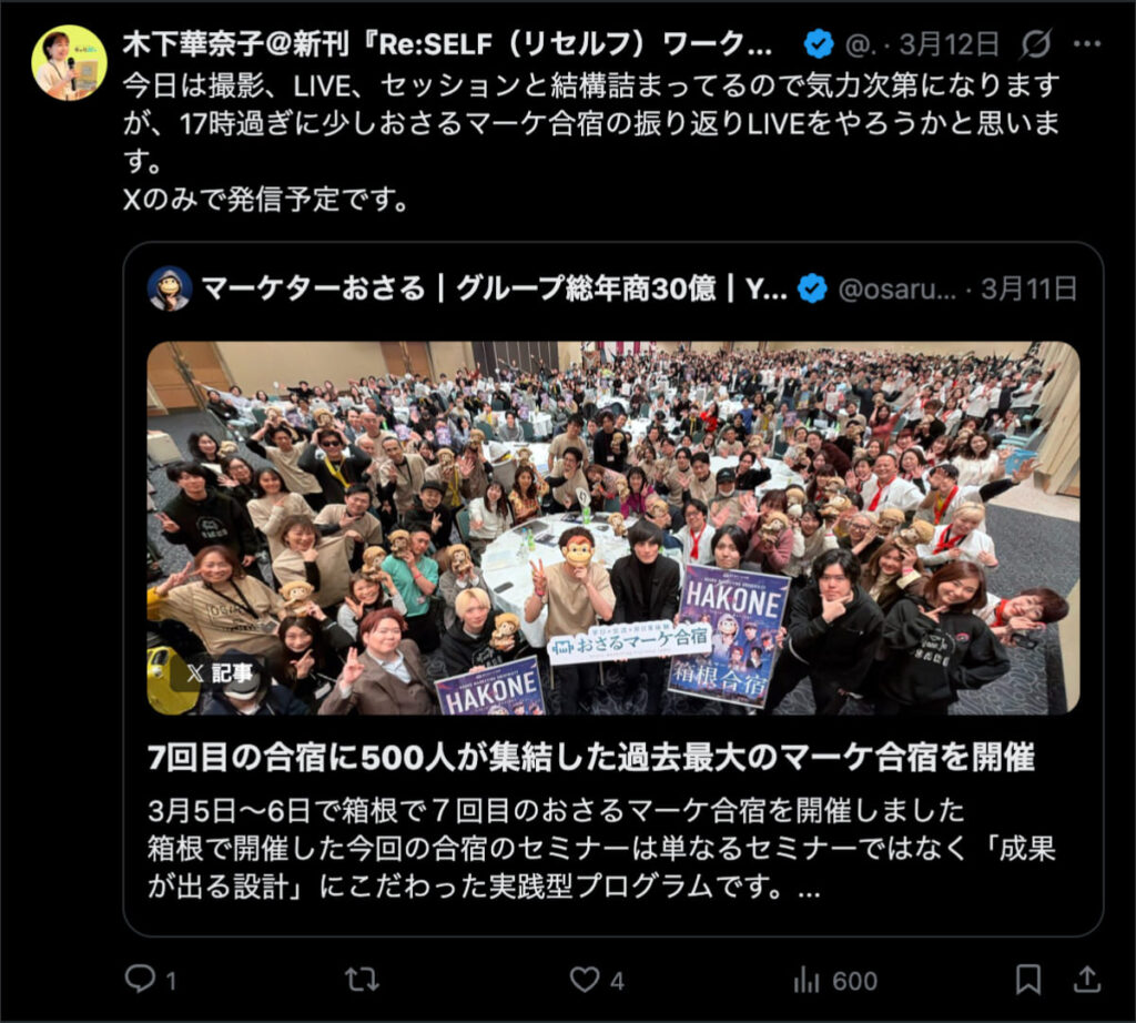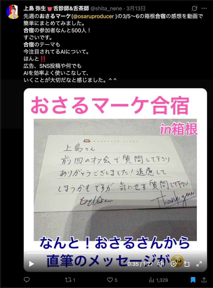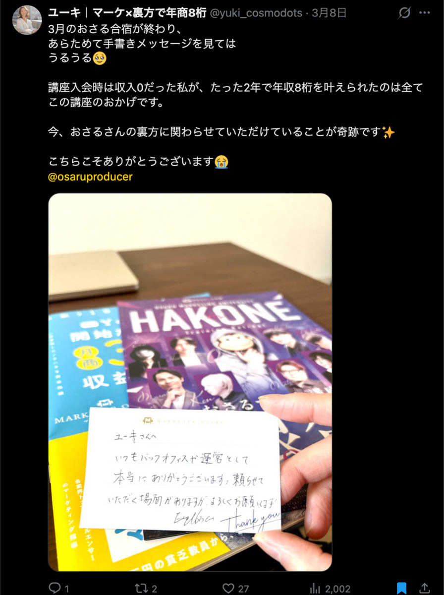僕が自ら参加者全員、500通超の手書きカードを数日かけて準備しました。泣いて喜んでくれる人もいました。Xのトレンド入りもしました。