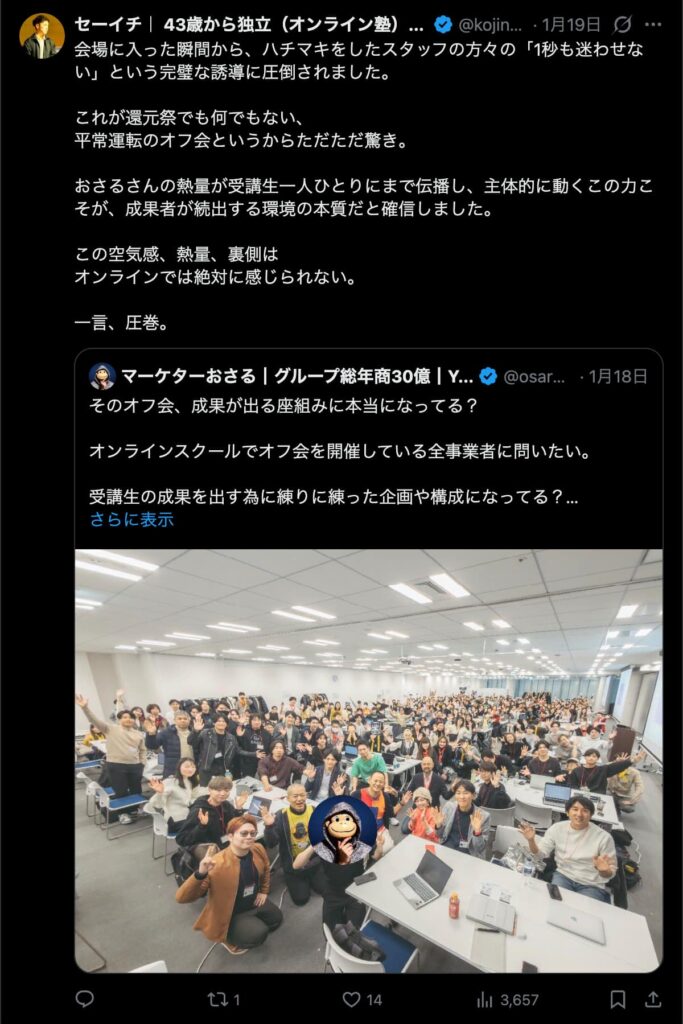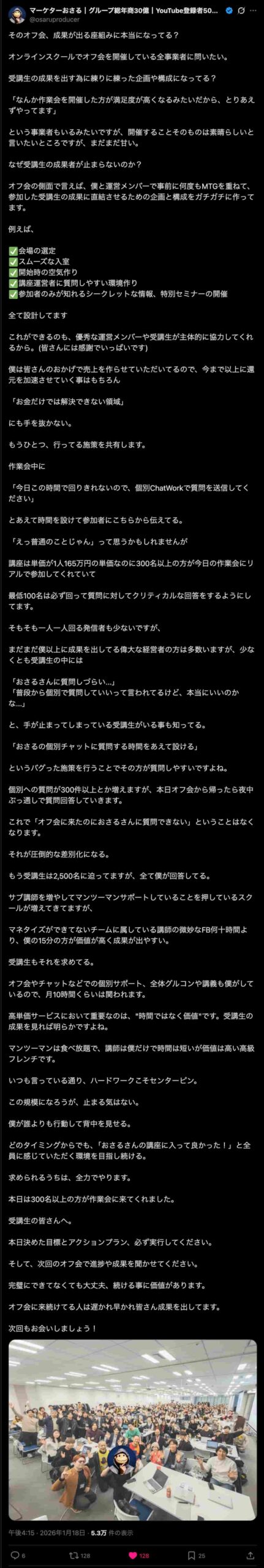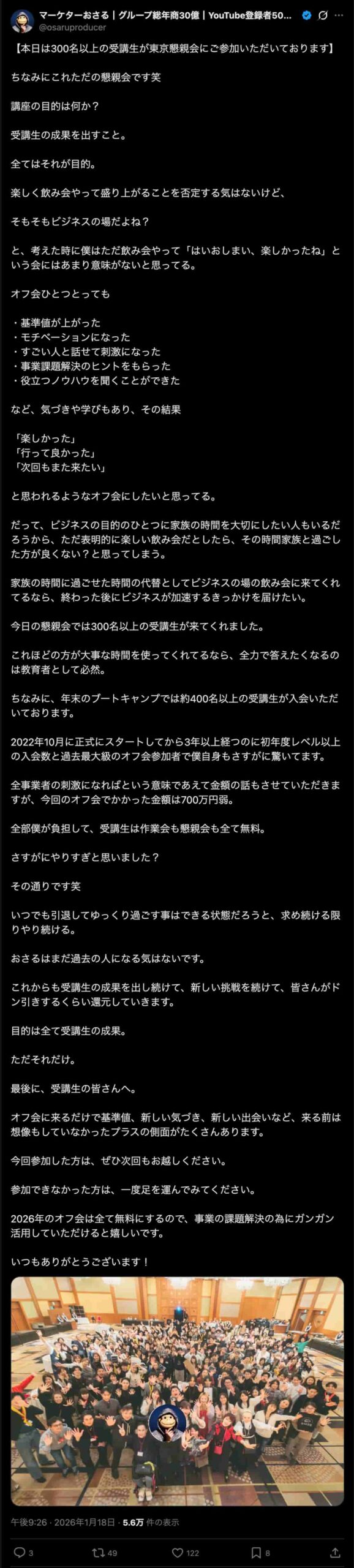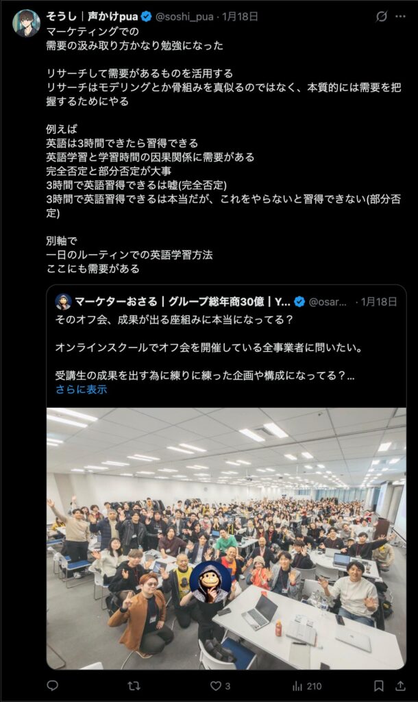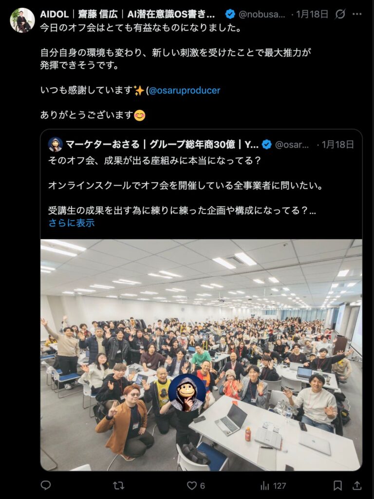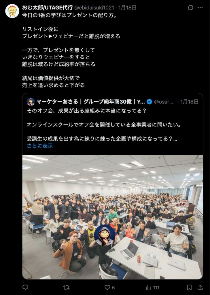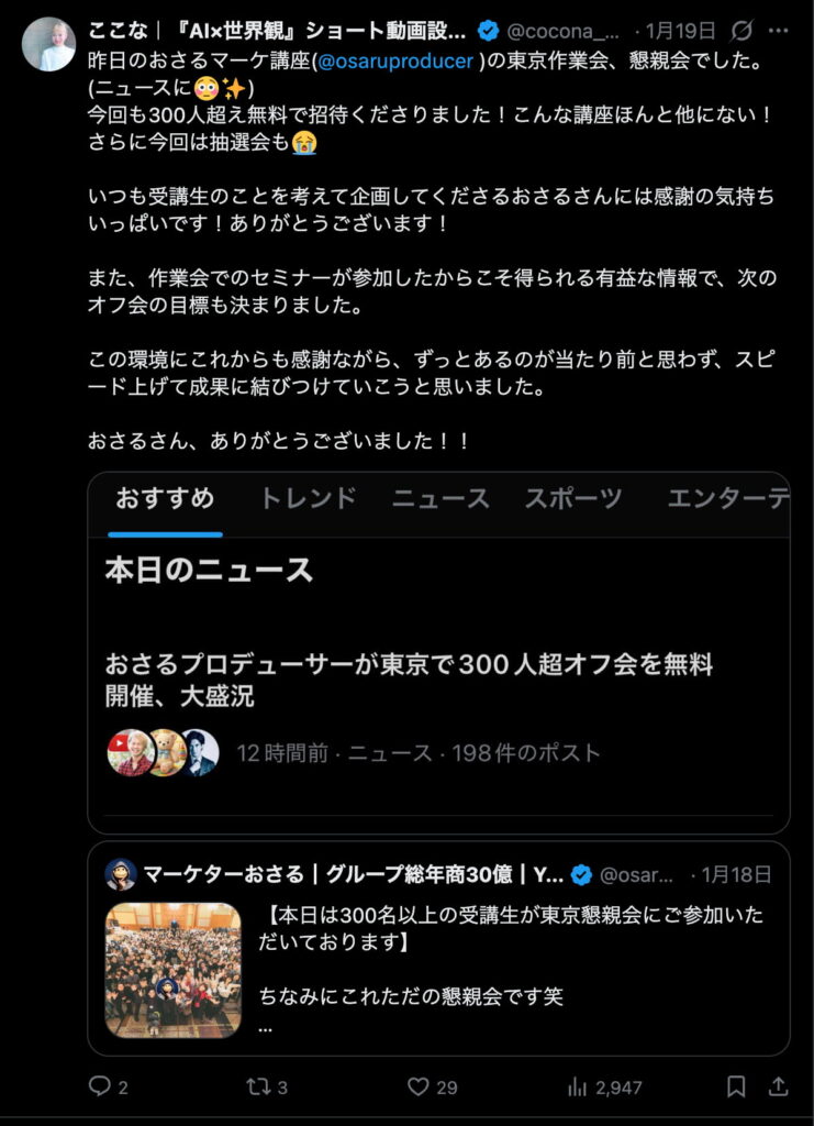 また、自身のブランドがまだ確立されていない段階では、なによりも手厚いサポートが重要であること。そして、お客様からの口コミや声こそが、もっとも強力なランディングページ(LP)になることを伝え、おさる自身がどうやって信頼を積み重ねてきたか、その根幹となる部分をお伝えしました。