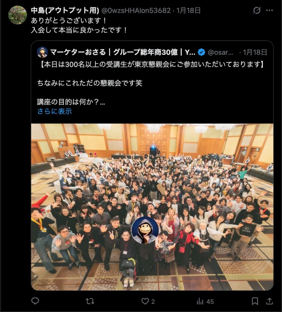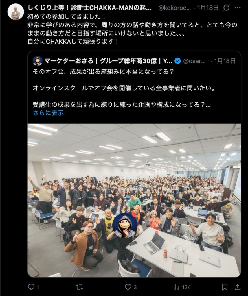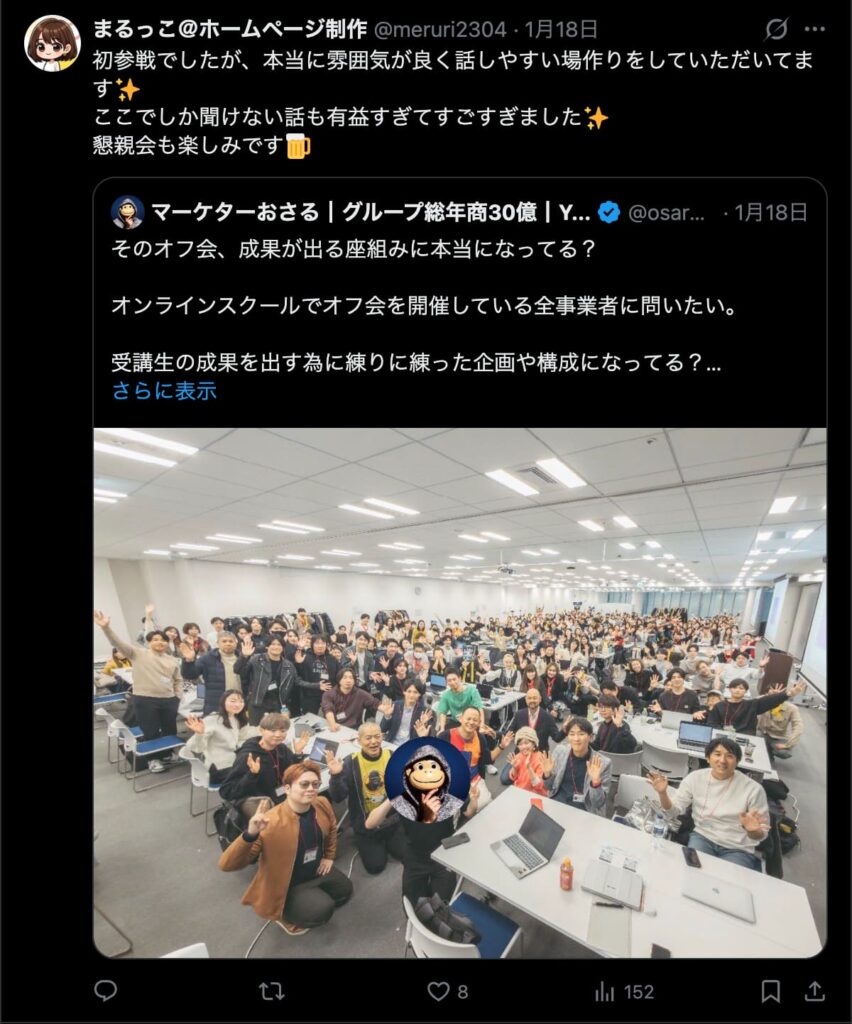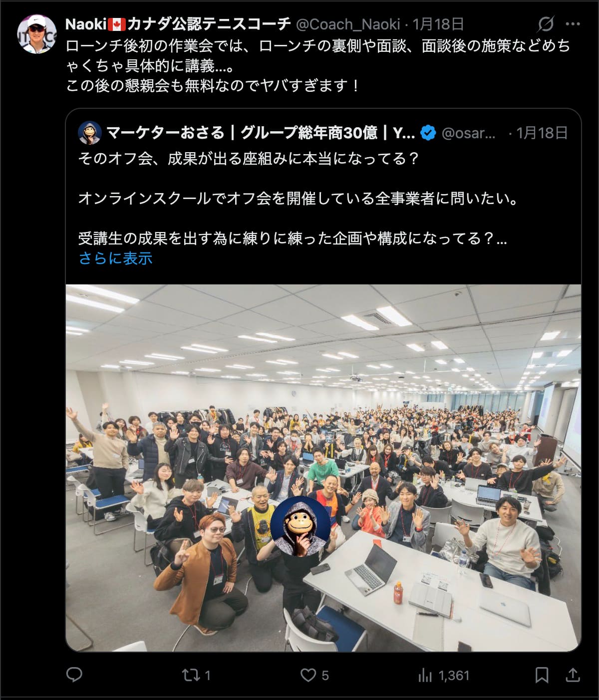 今回は、昨年12月のローンチを経て新しくおさるマーケ講座に入会した方が多く参加してくれました。