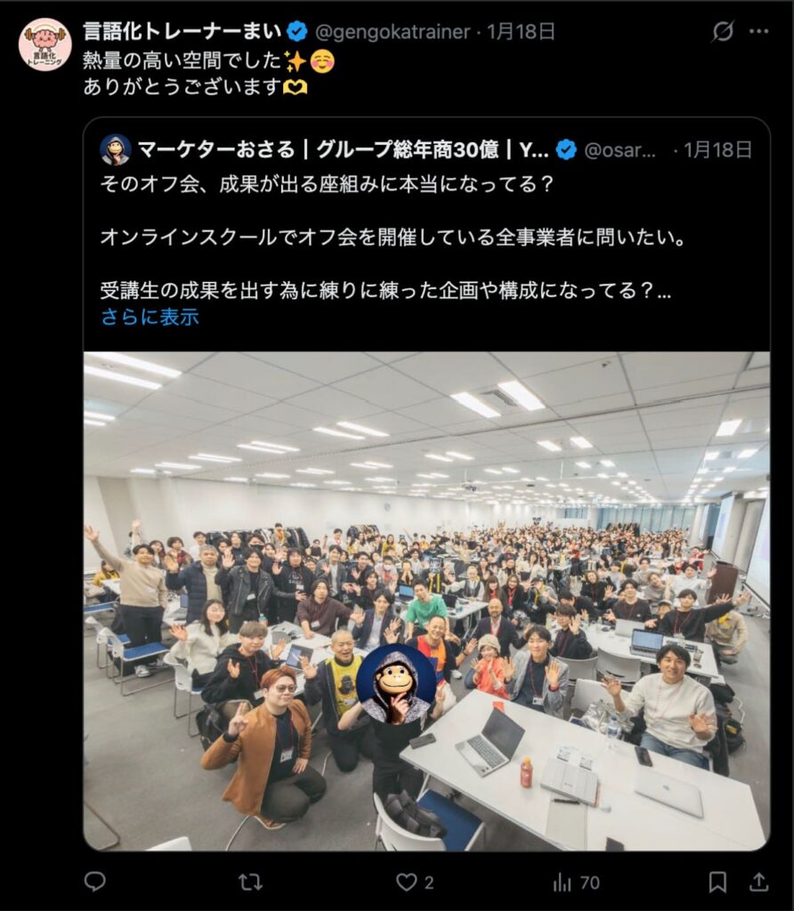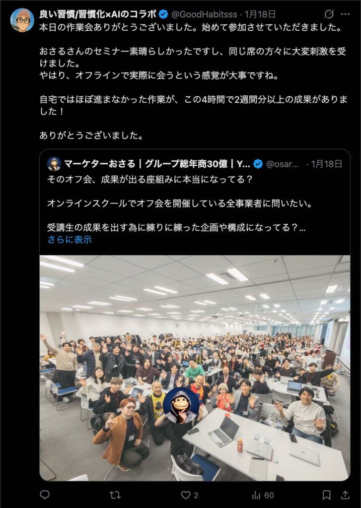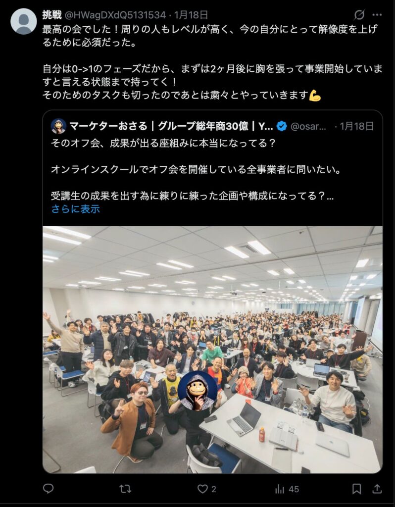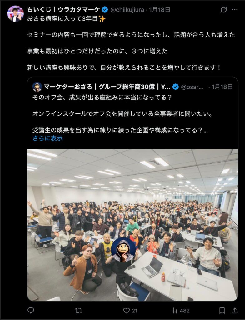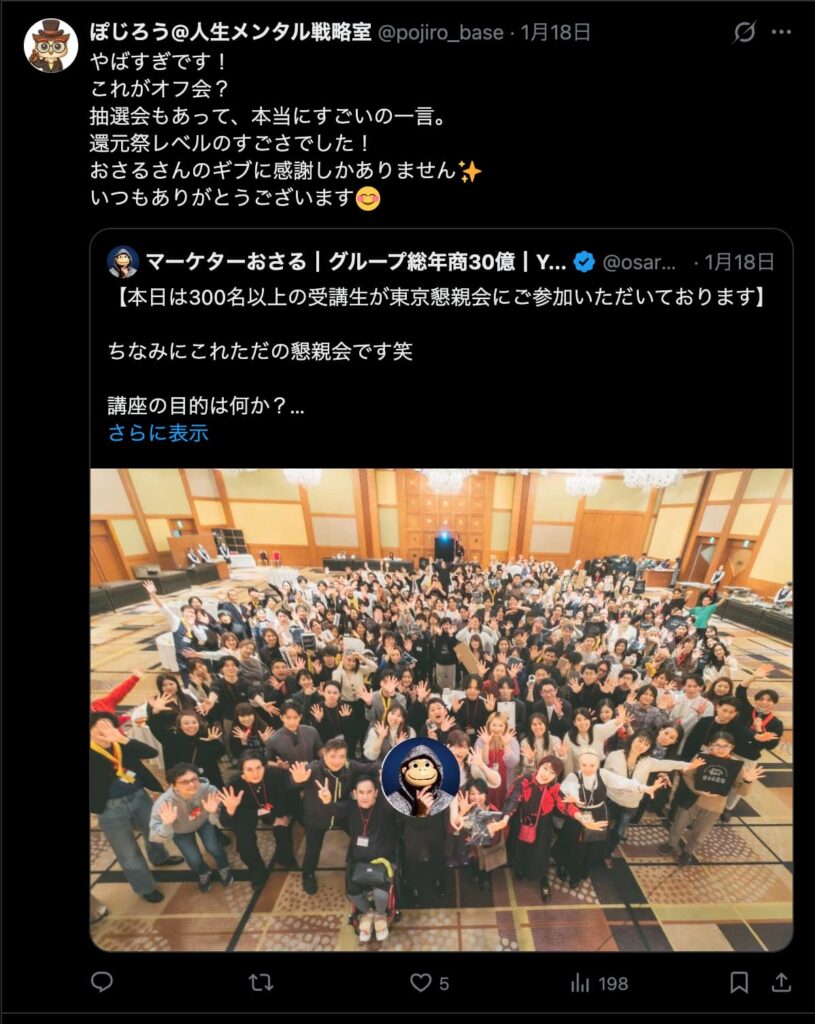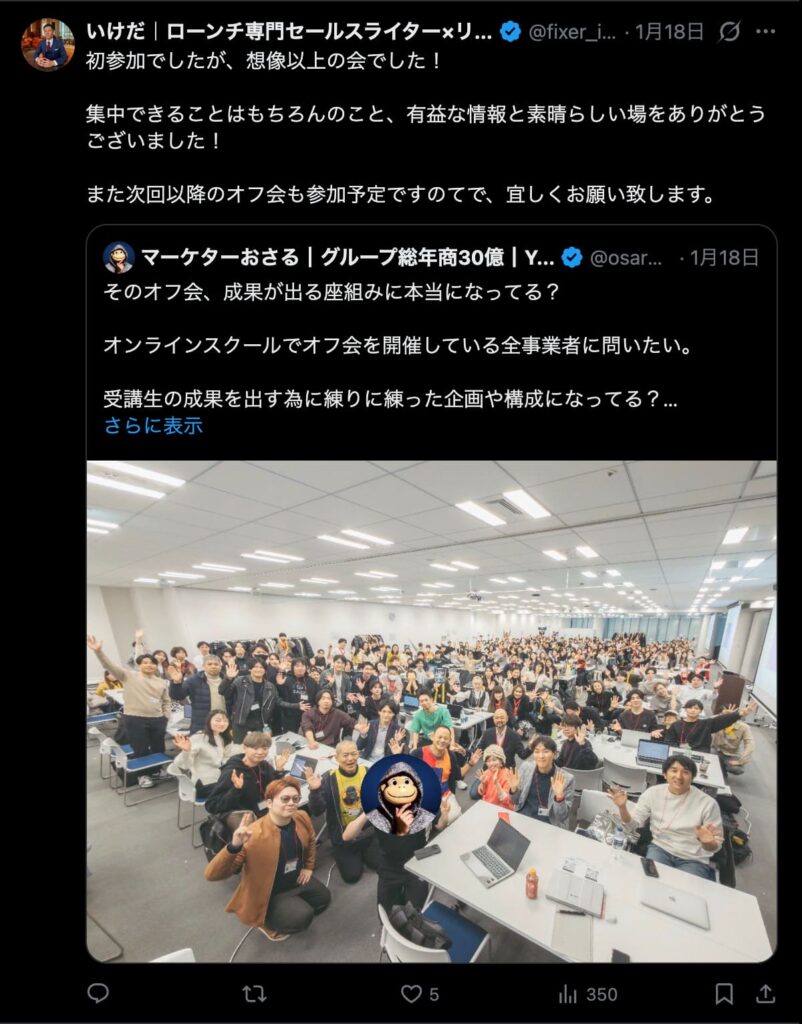 今回は、昨年12月のローンチを経て新しくおさるマーケ講座に入会した方が多く参加してくれました。