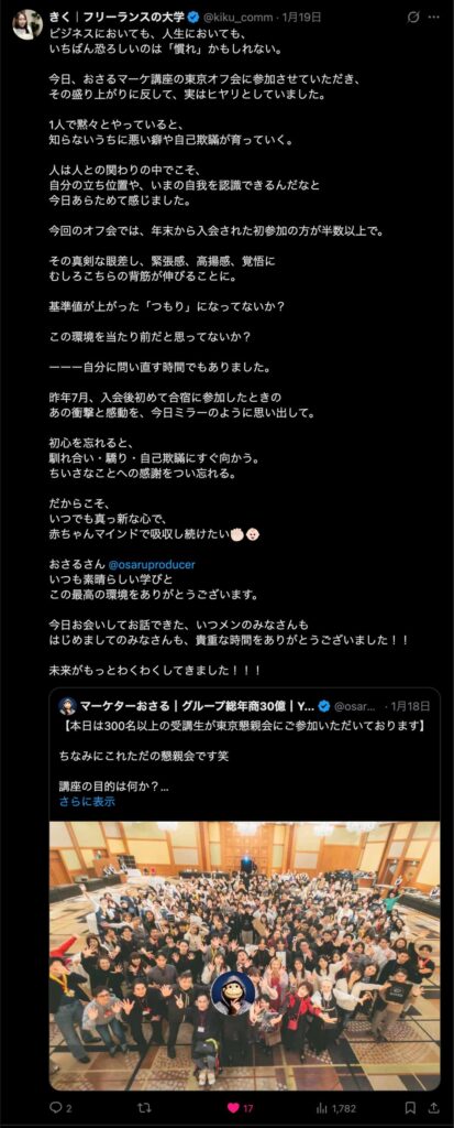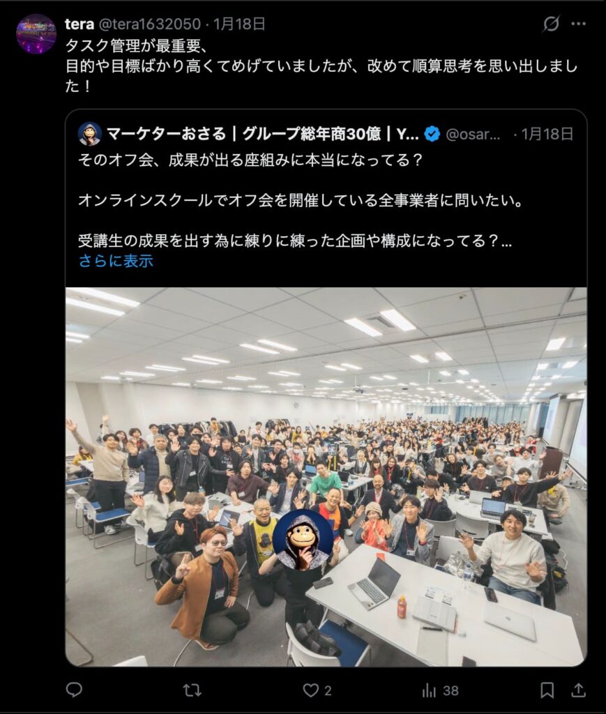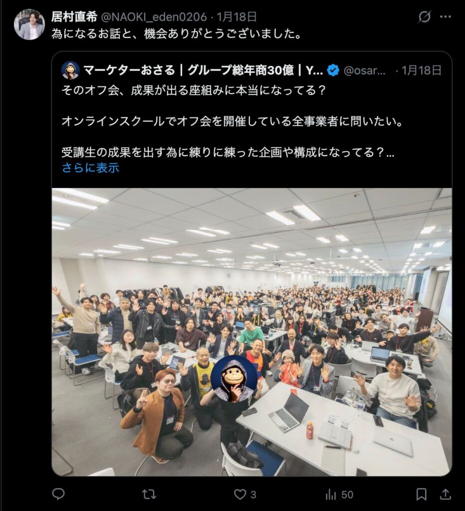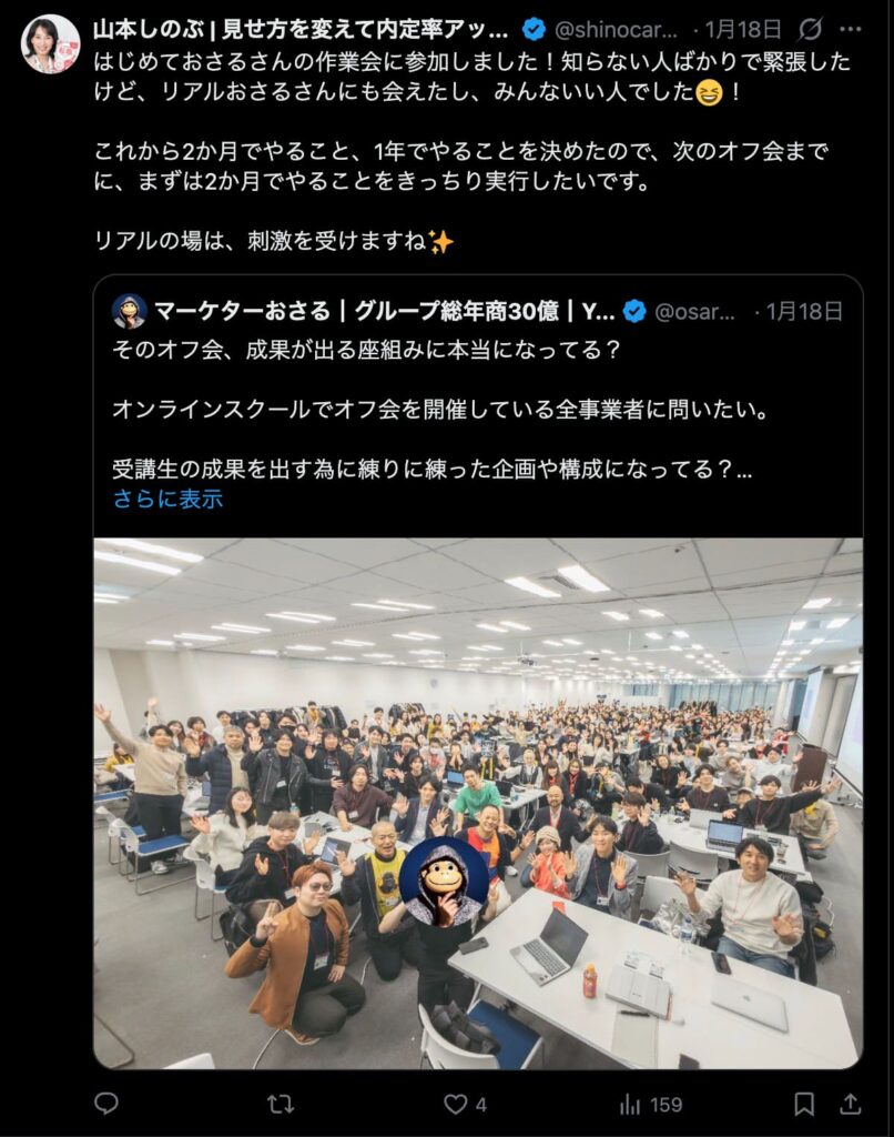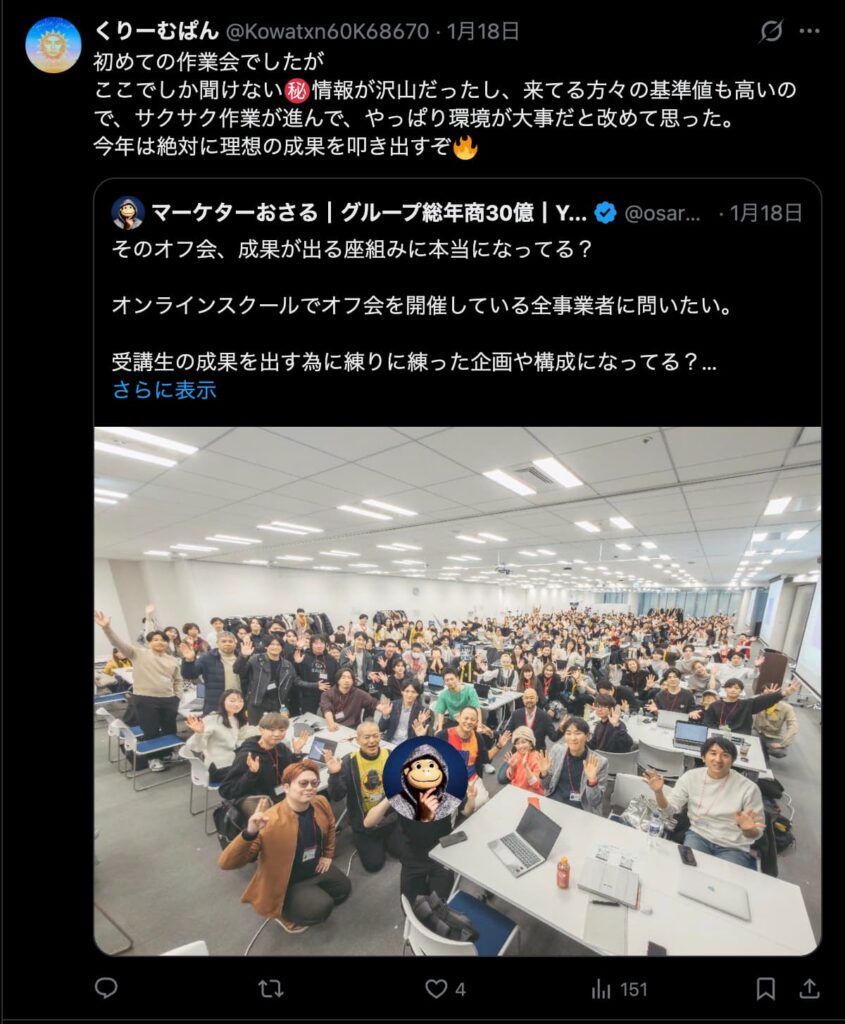 今回は、昨年12月のローンチを経て新しくおさるマーケ講座に入会した方が多く参加してくれました。