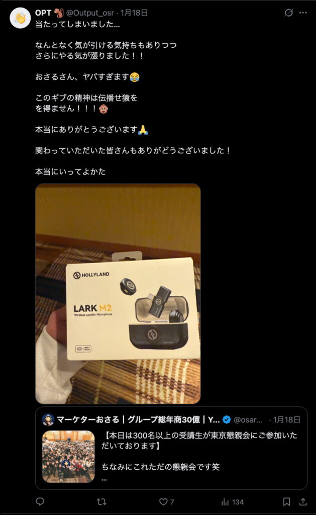 おさるのオリジナルグッズから、動画撮影にも役立つ「DJI Osmo Pocket 3」まで。当選された方おめでとうございます。