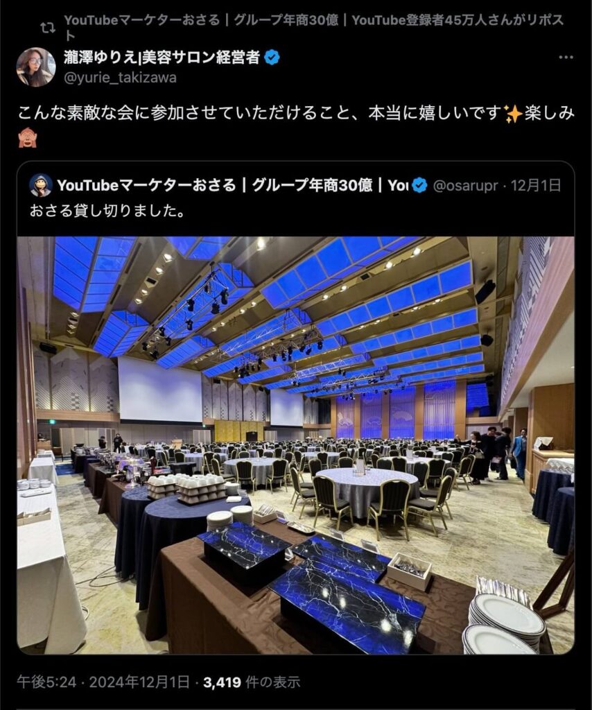 今回のイベントは、皆さんの横の繋がりを作るための特別な機会として企画いたしました。会場費やプレゼント費用など総額1,000万円規模の還元イベントとなります