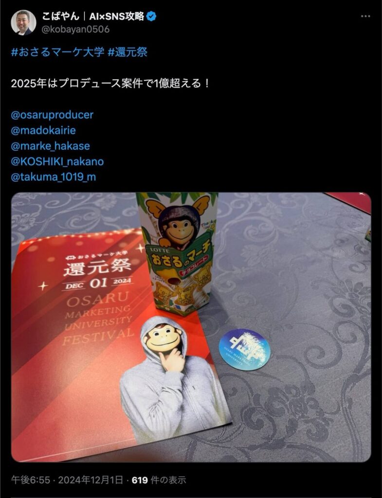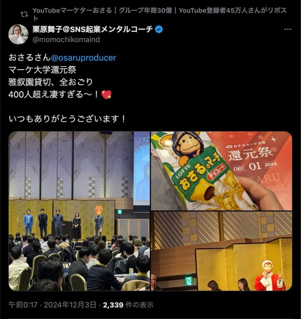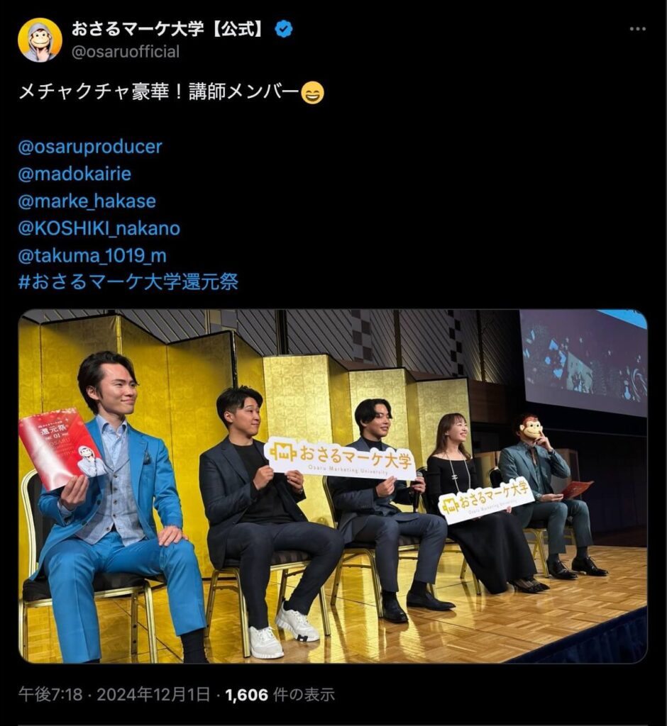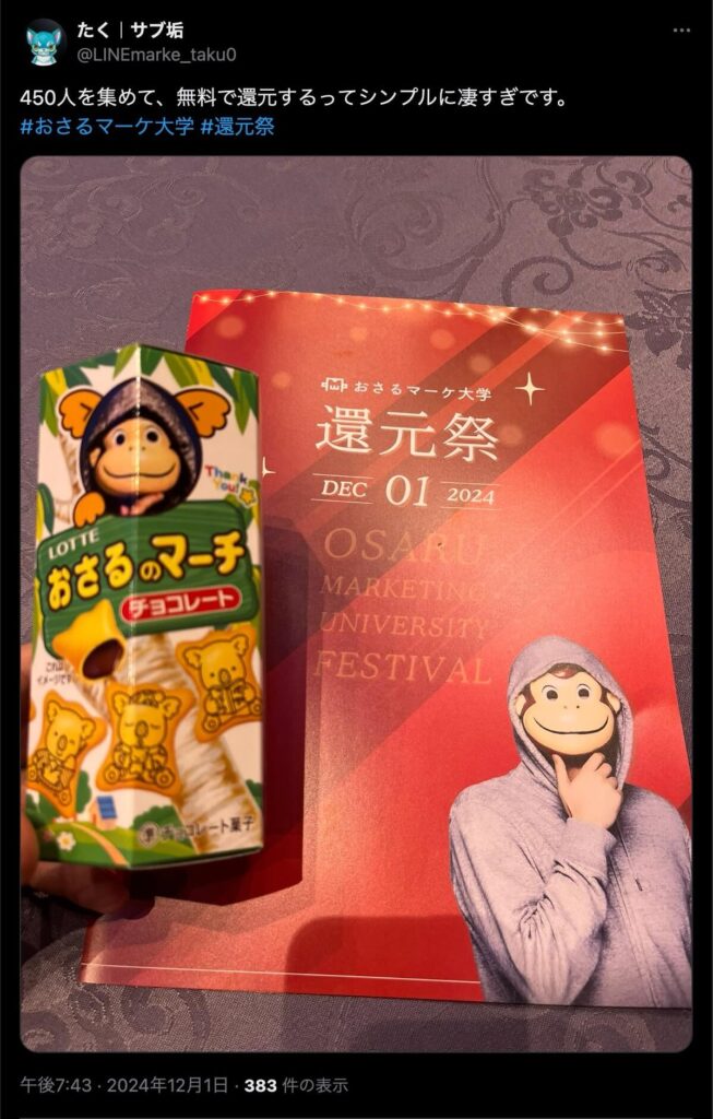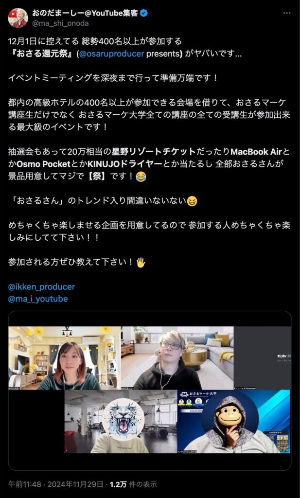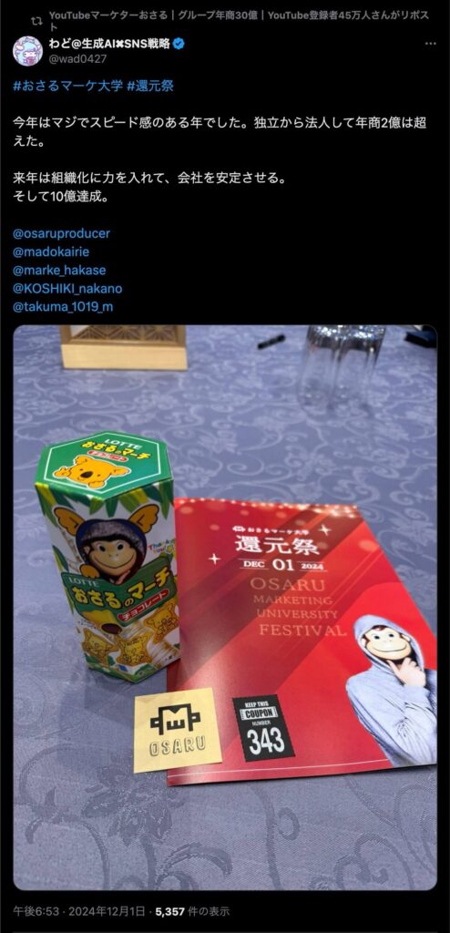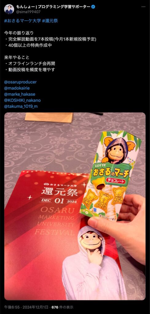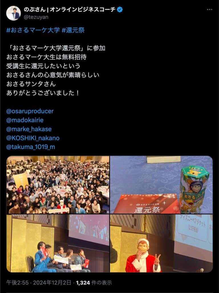 2024年12月1日、おさるマーケ大学の累計受講生数が5,000名突破したことを記念して「還元祭」と題した特別企画を開催しました。