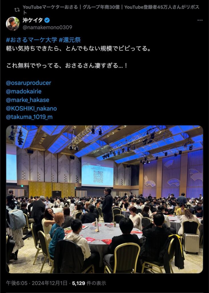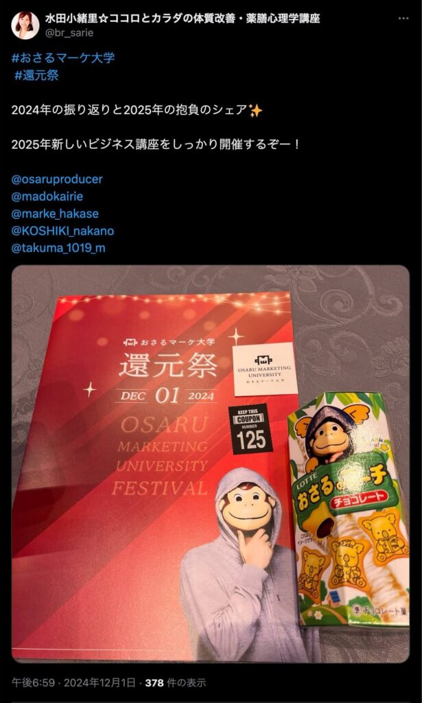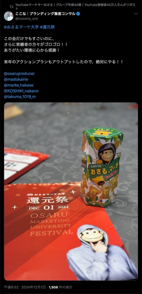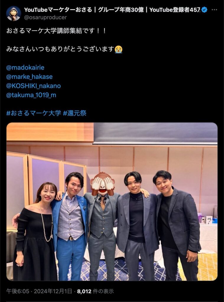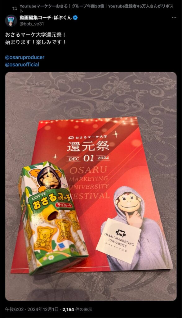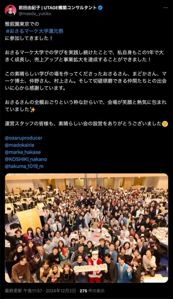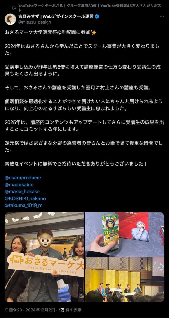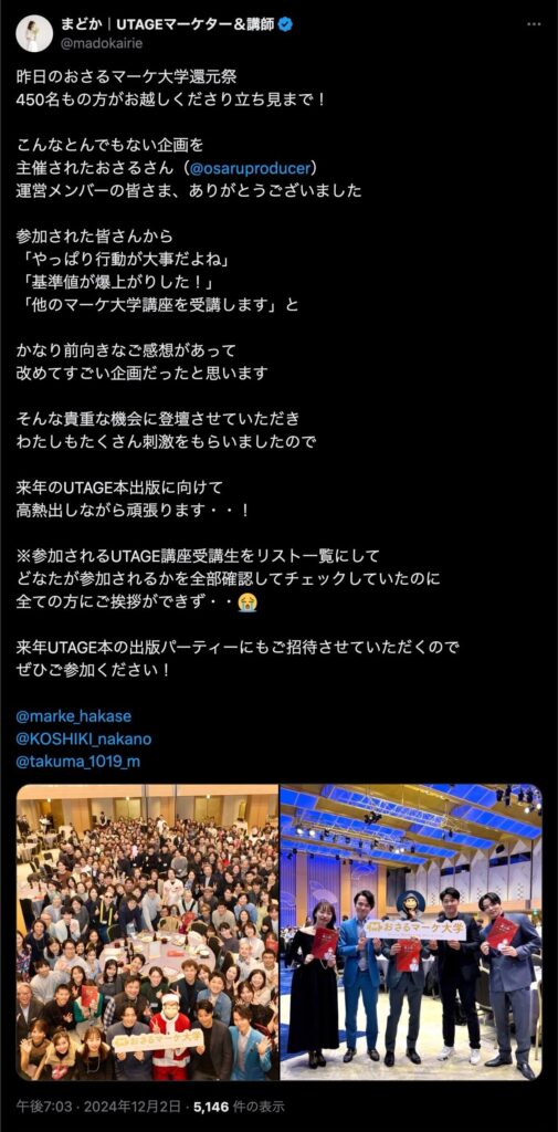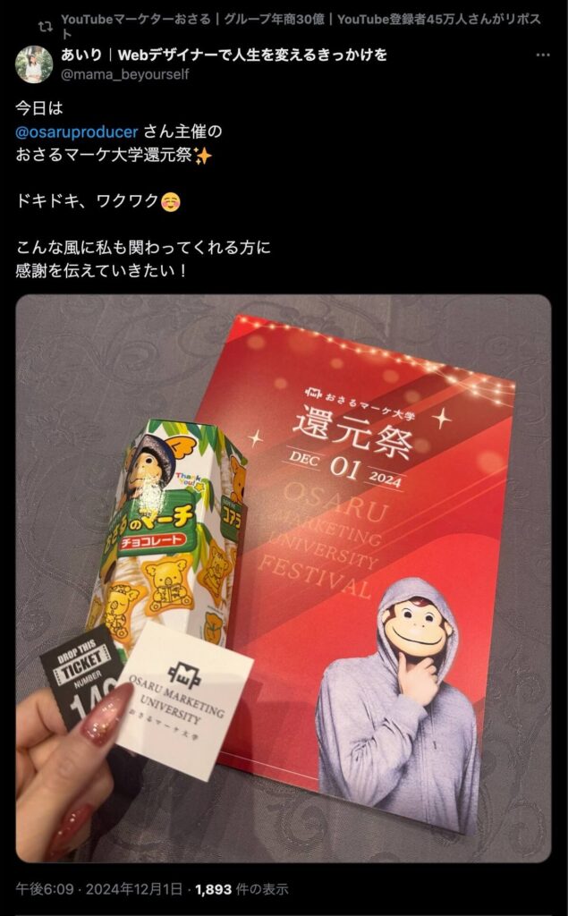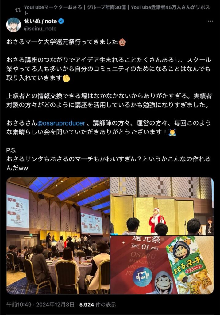 2024年12月1日、おさるマーケ大学の累計受講生数が5,000名突破したことを記念して「還元祭」と題した特別企画を開催しました。