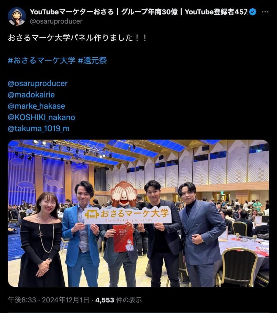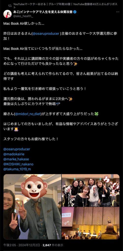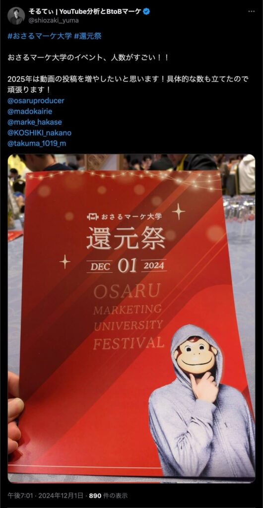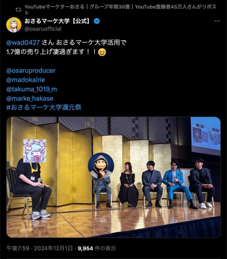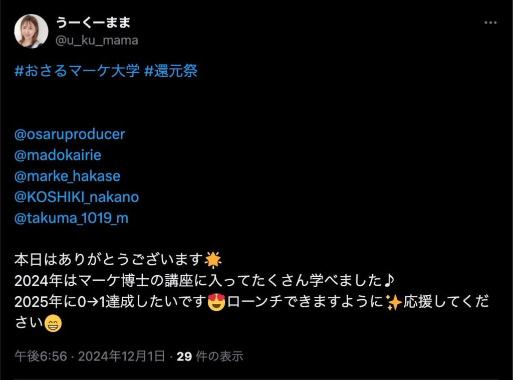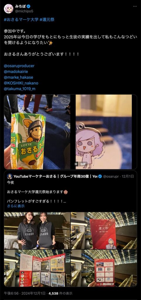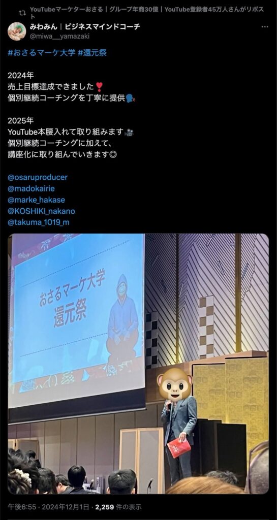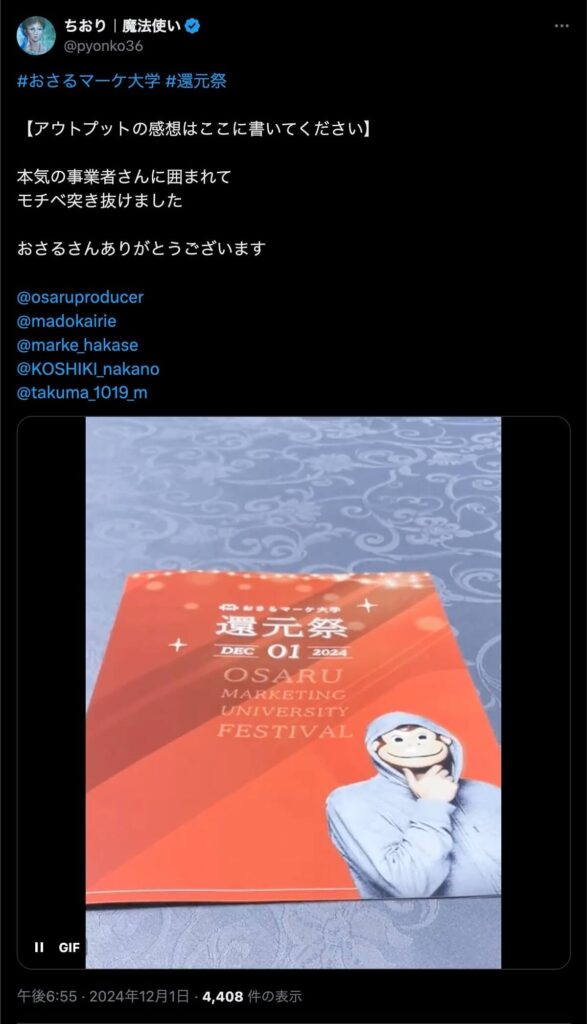 2024年12月1日、おさるマーケ大学の累計受講生数が5,000名突破したことを記念して「還元祭」と題した特別企画を開催しました。
