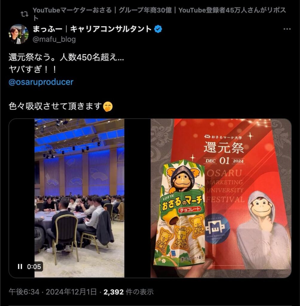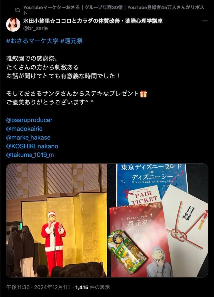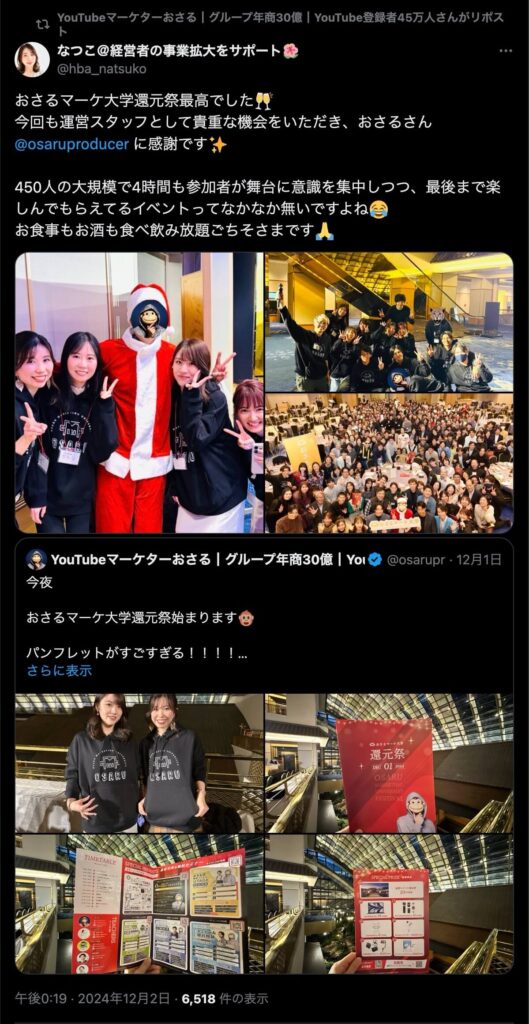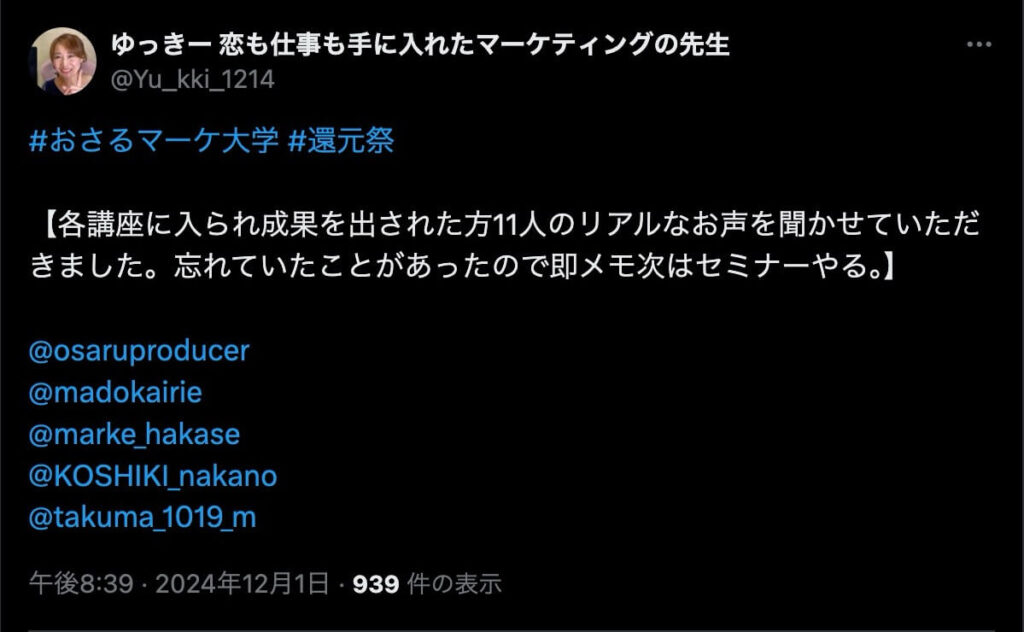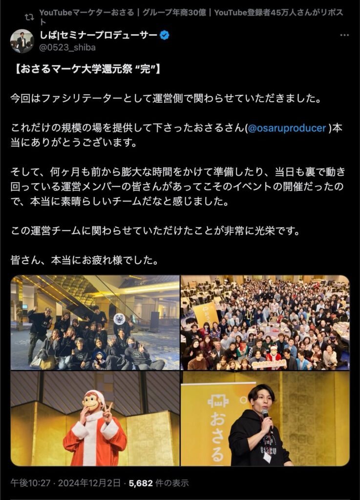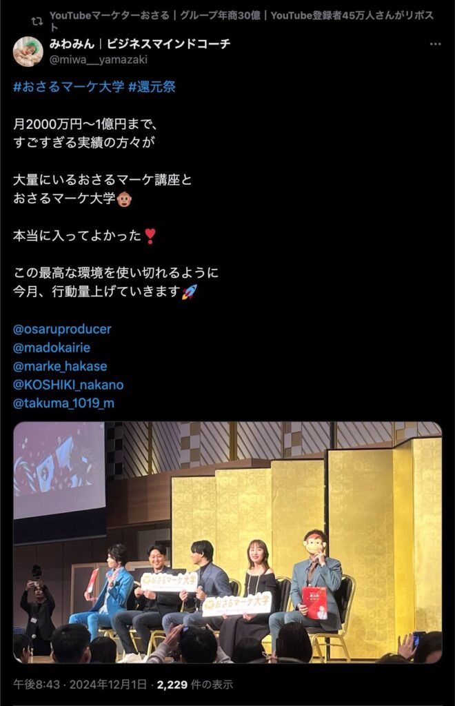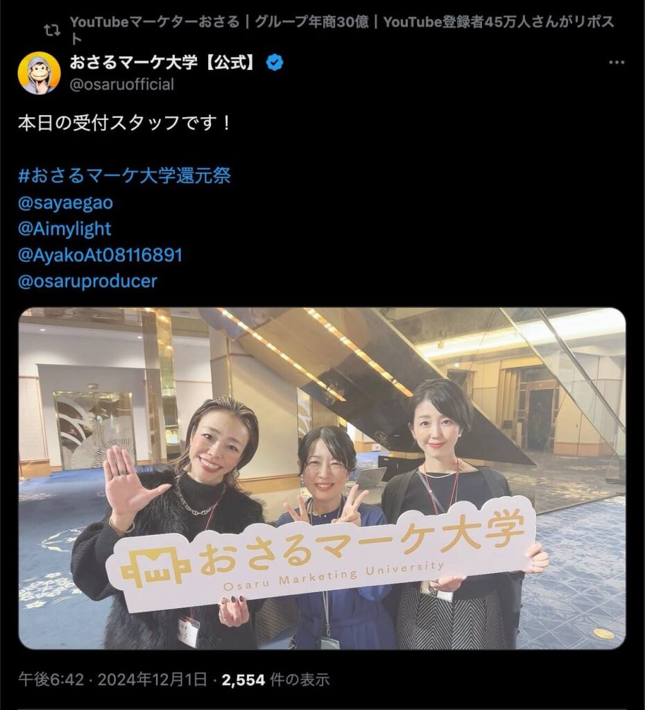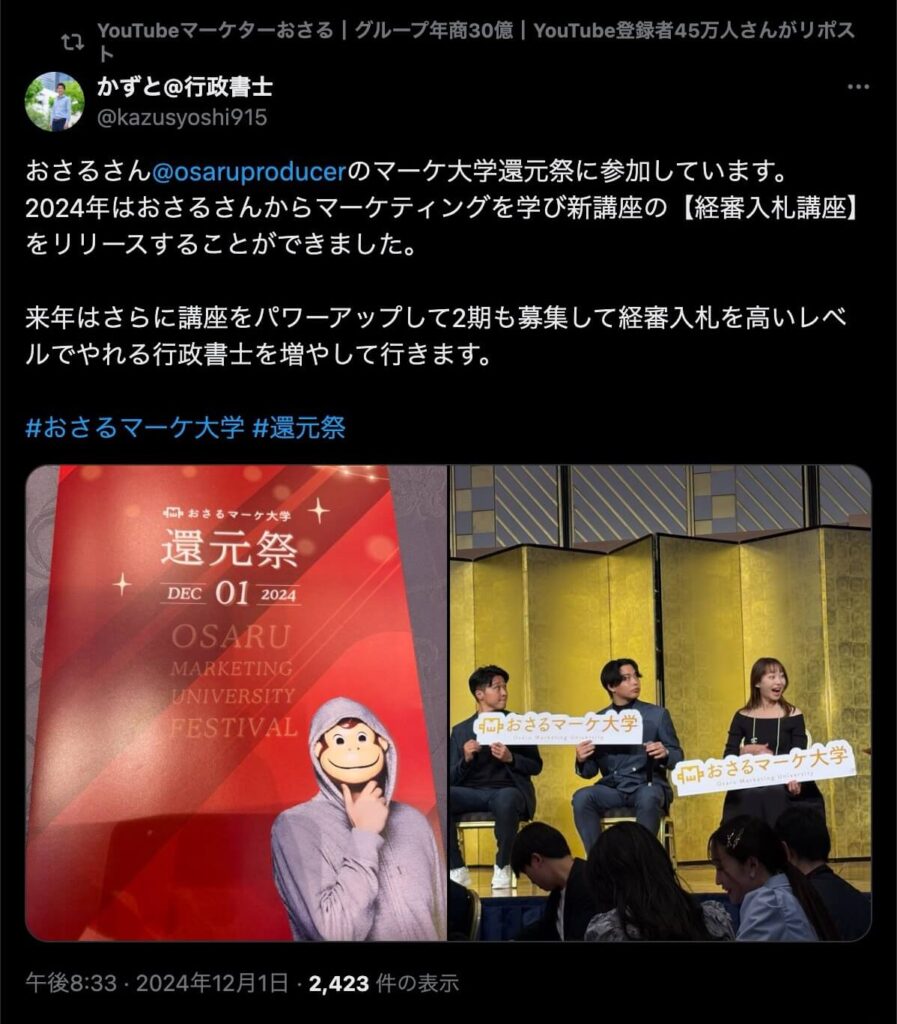 2024年12月1日、おさるマーケ大学の累計受講生数が5,000名突破したことを記念して「還元祭」と題した特別企画を開催しました。