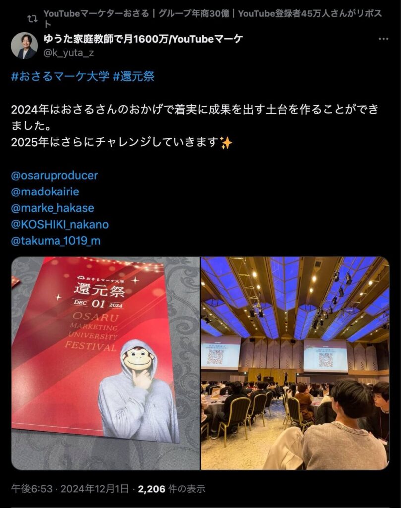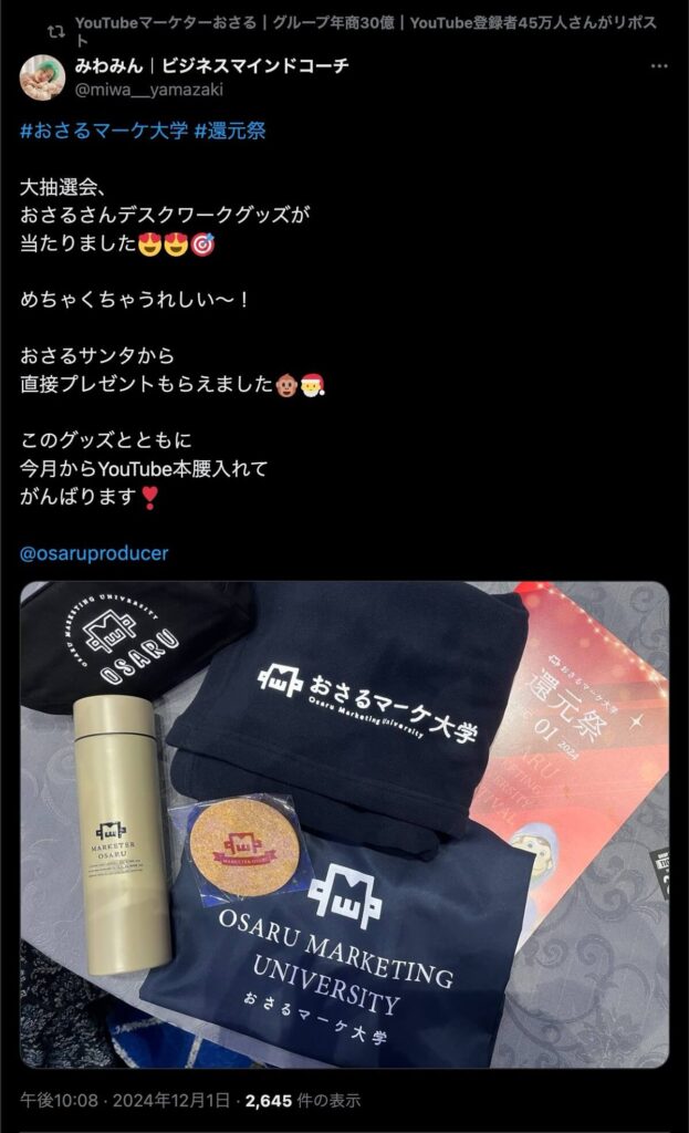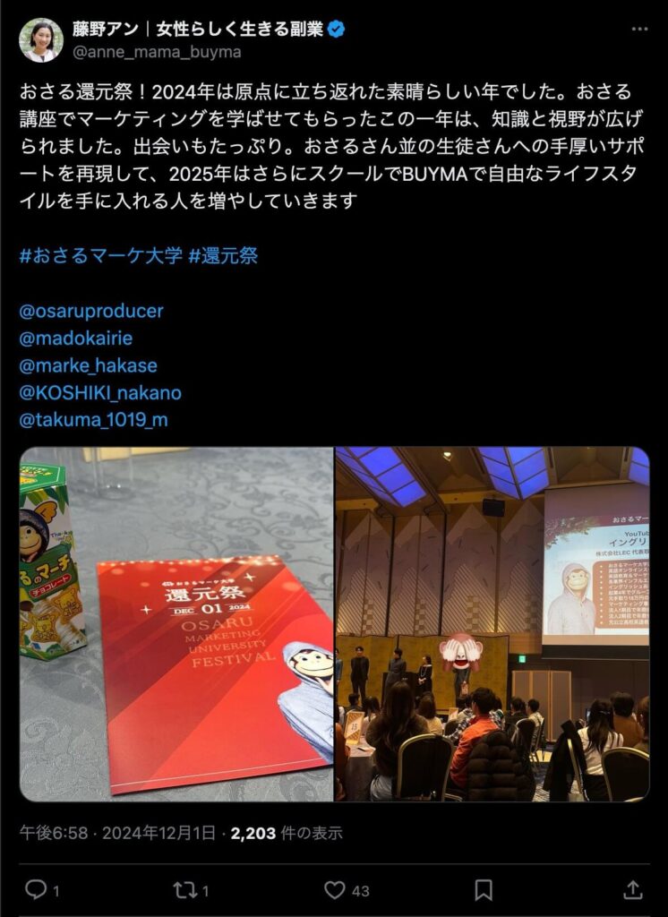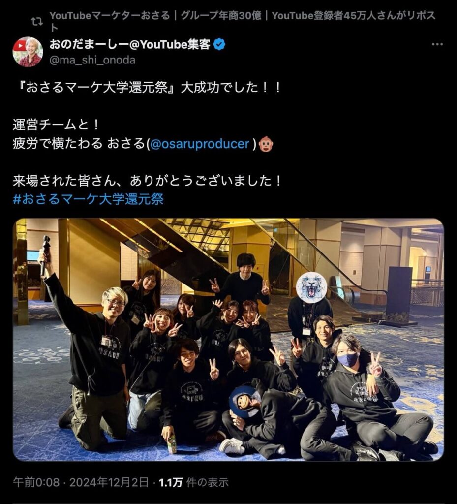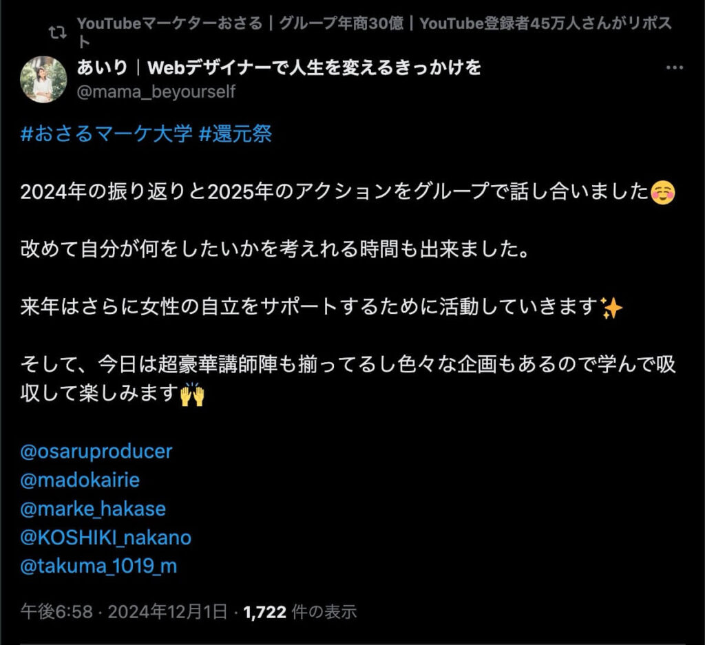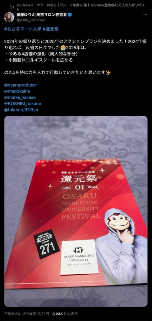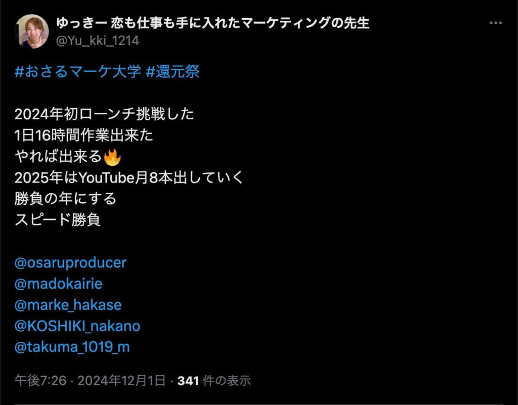 2024年12月1日、おさるマーケ大学の累計受講生数が5,000名突破したことを記念して「還元祭」と題した特別企画を開催しました。