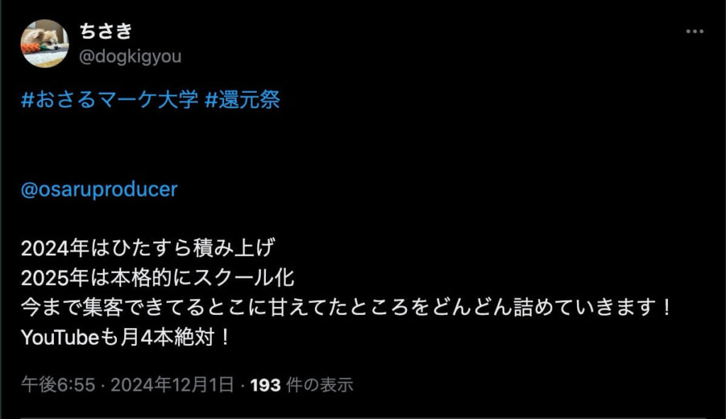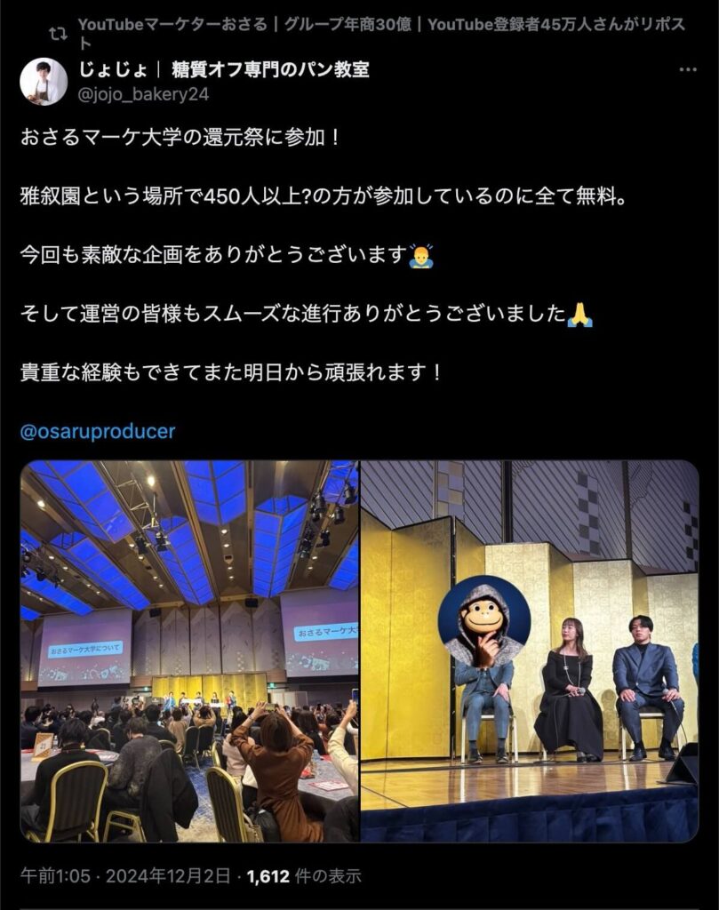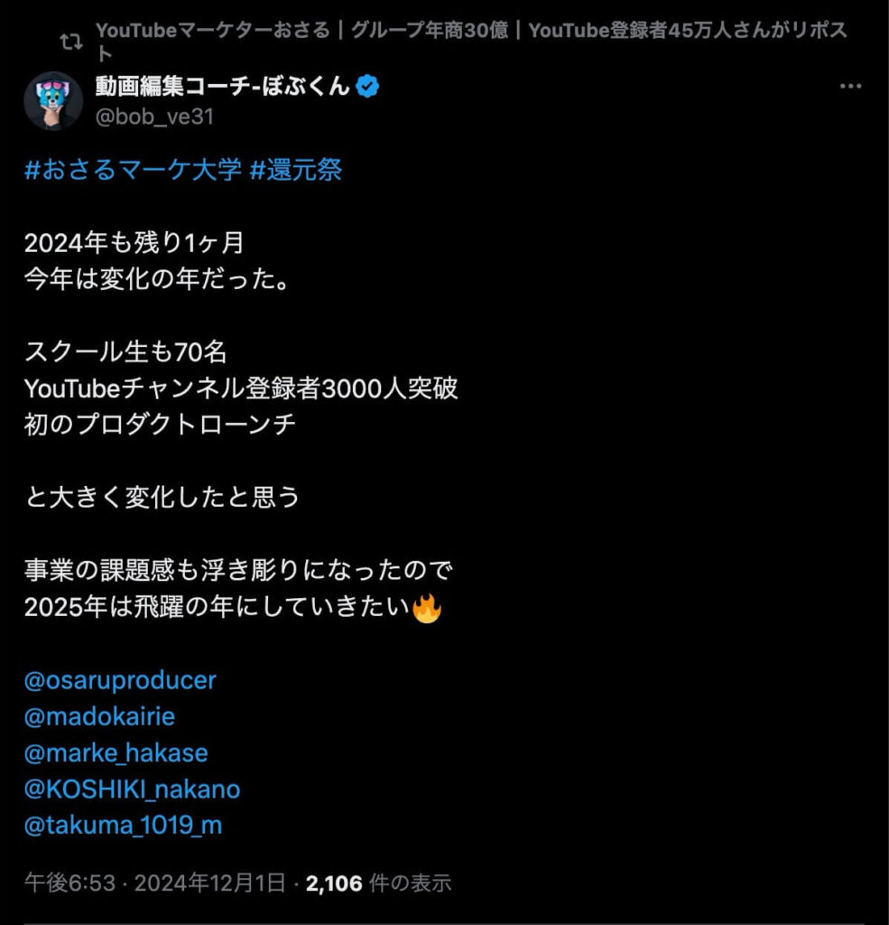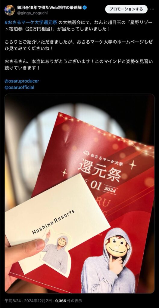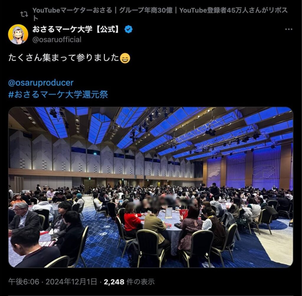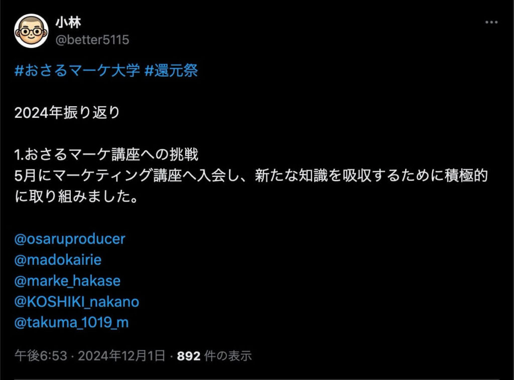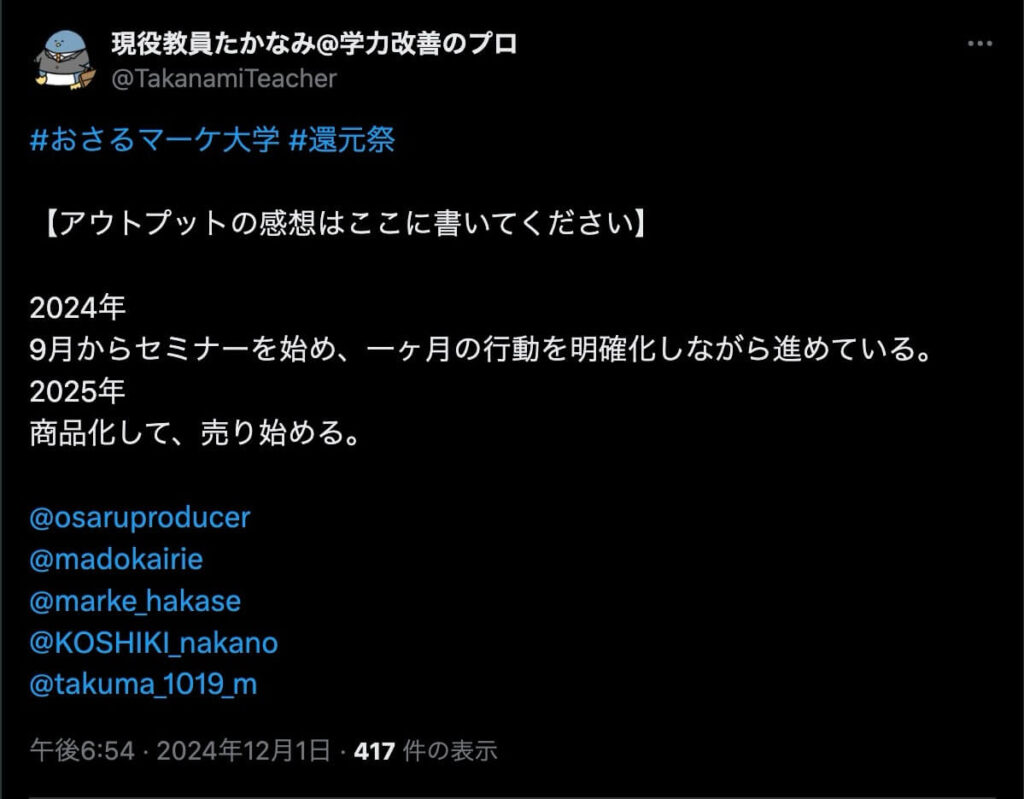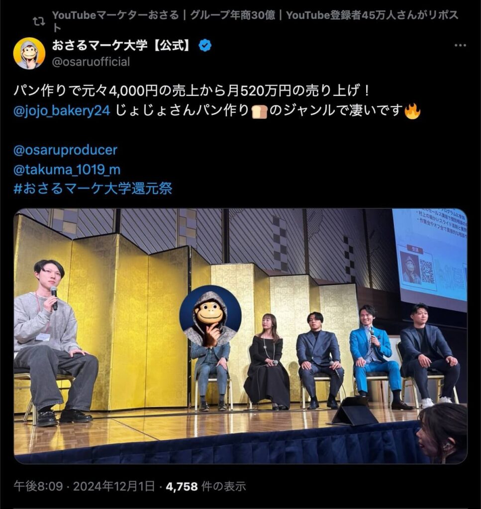2024年12月1日、おさるマーケ大学の累計受講生数が5,000名突破したことを記念して「還元祭」と題した特別企画を開催しました。