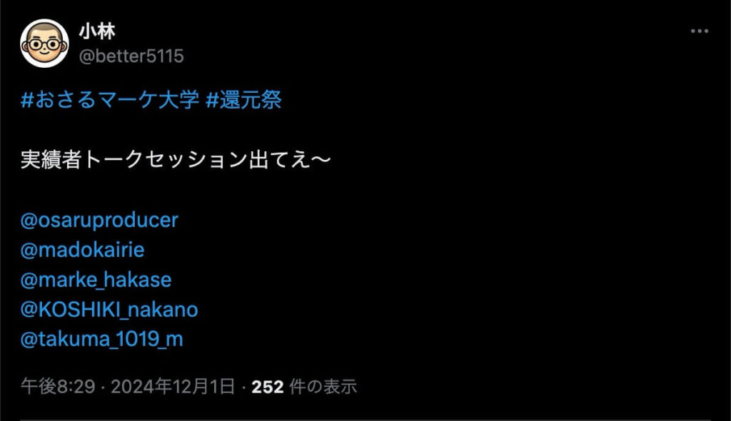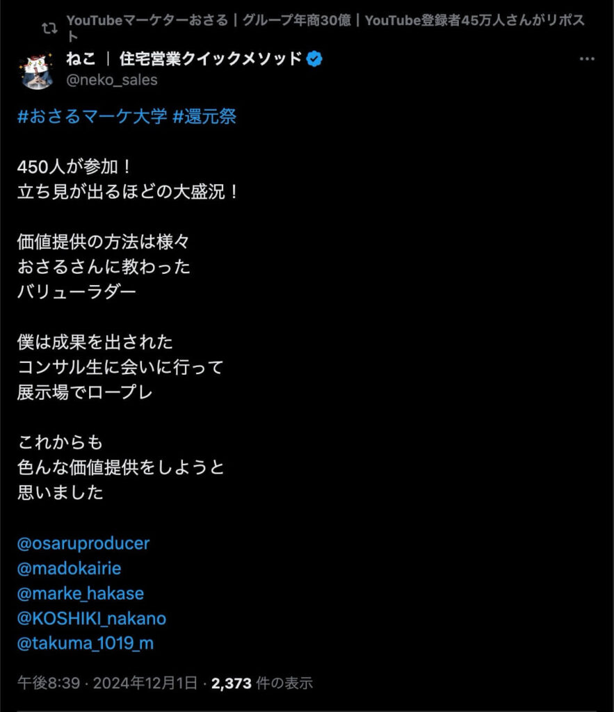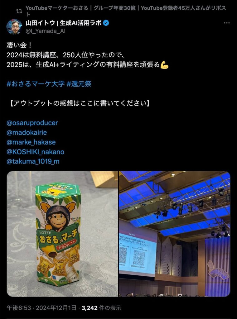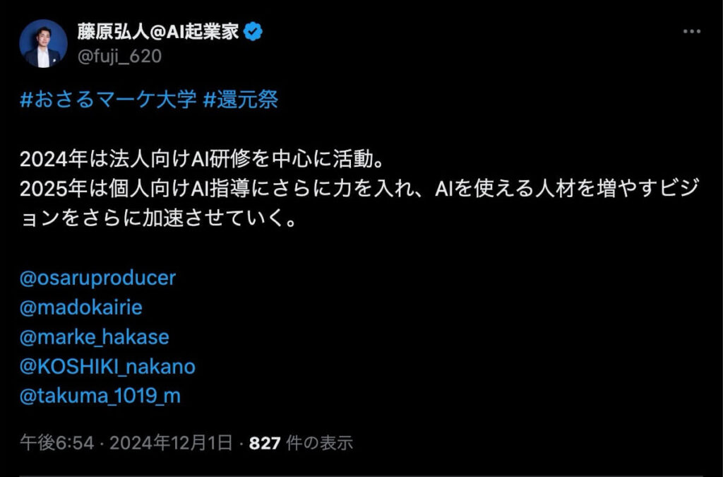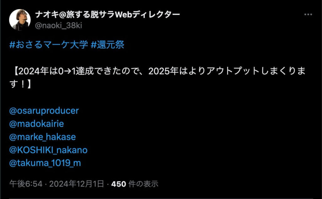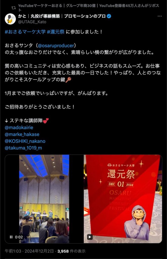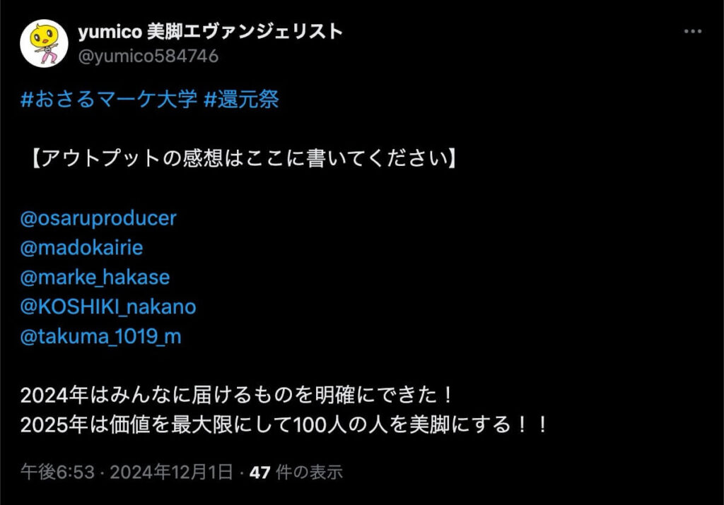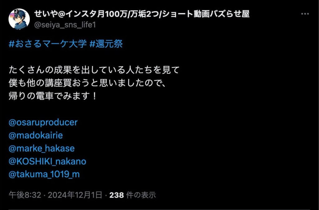 2024年12月1日、おさるマーケ大学の累計受講生数が5,000名突破したことを記念して「還元祭」と題した特別企画を開催しました。