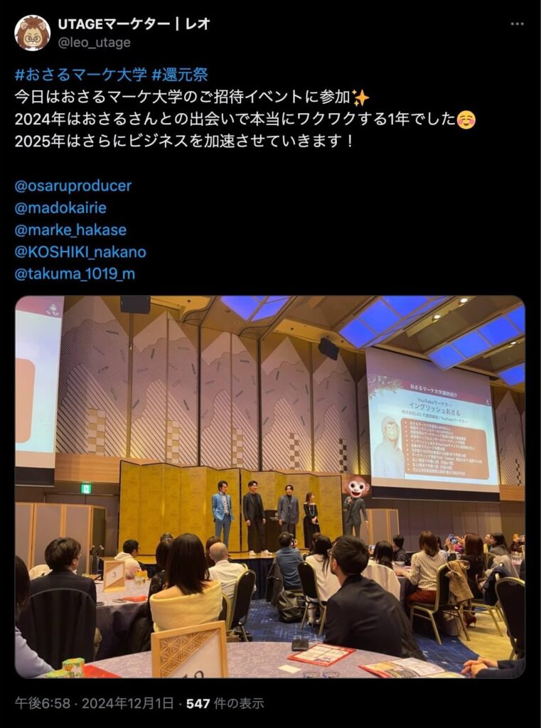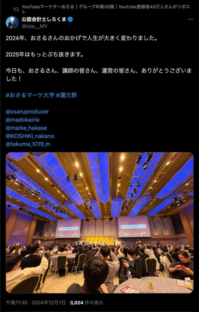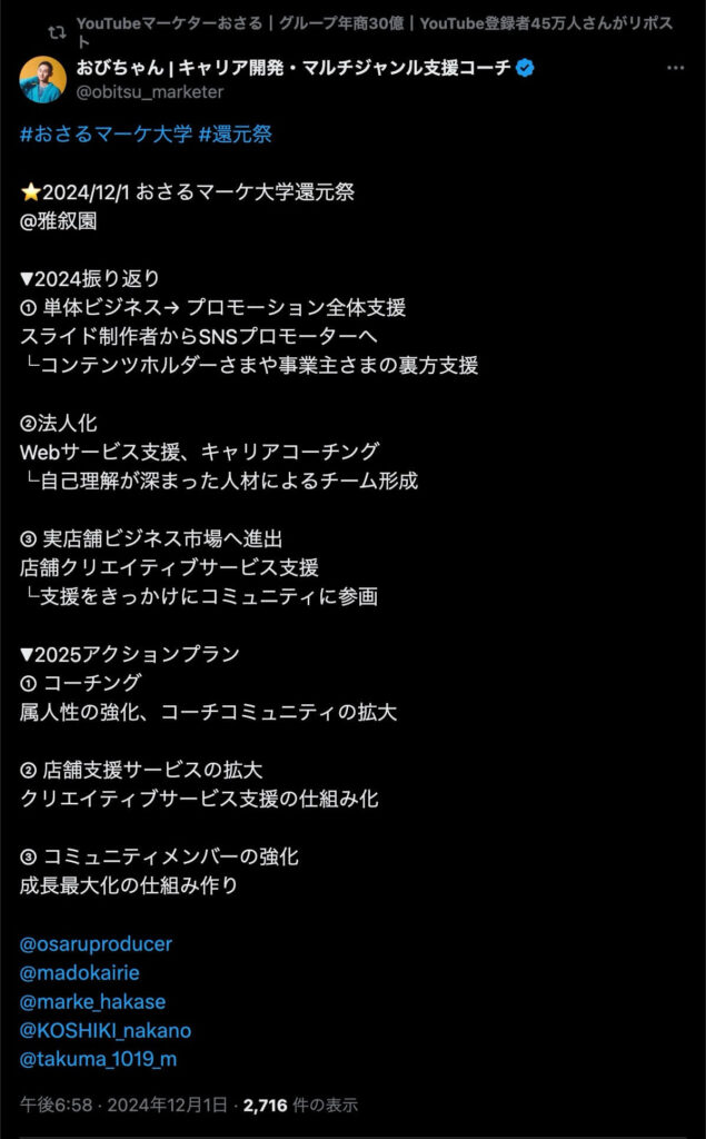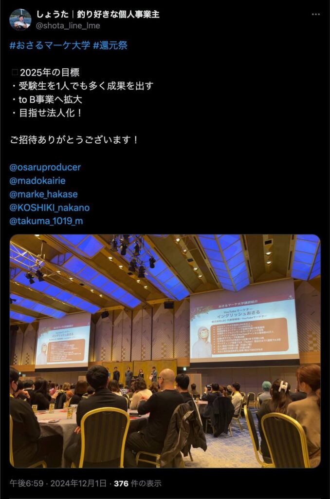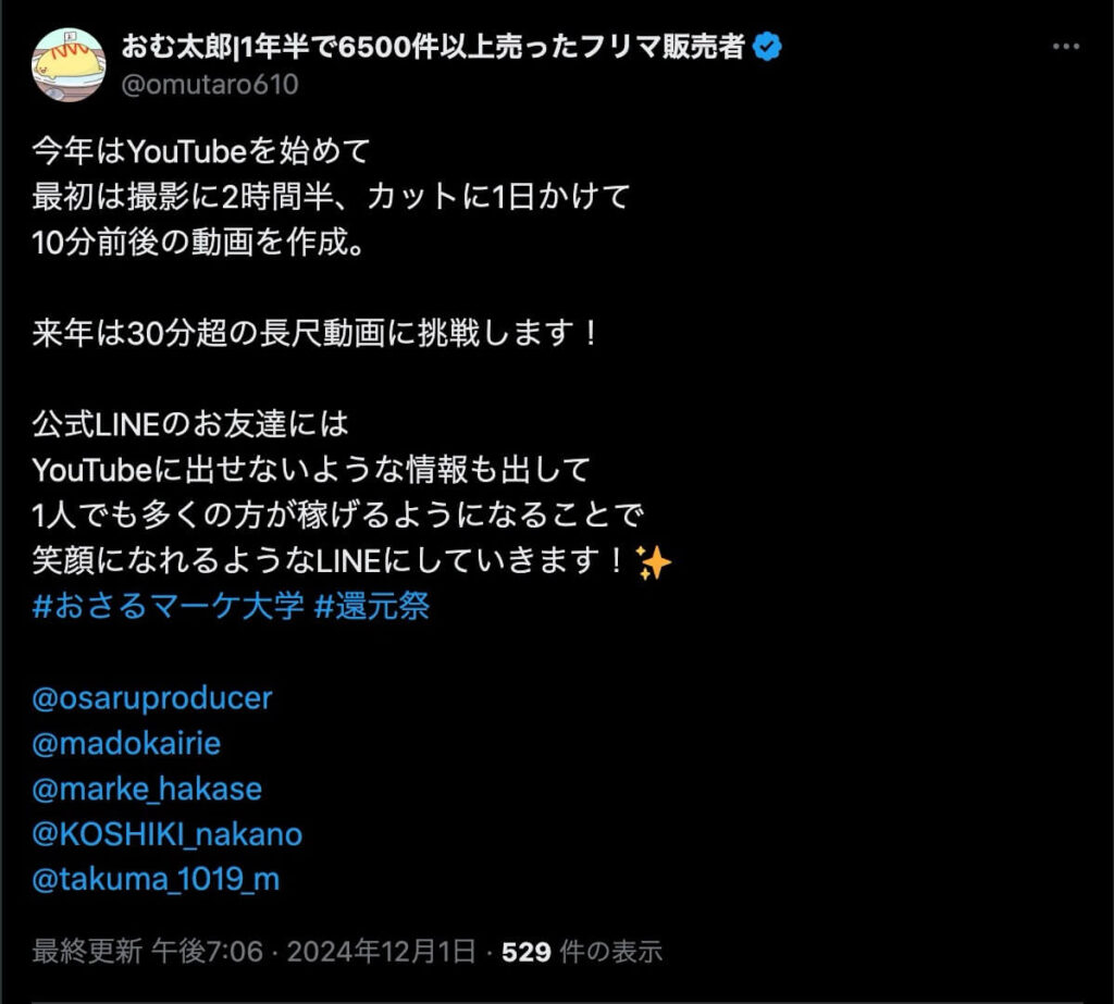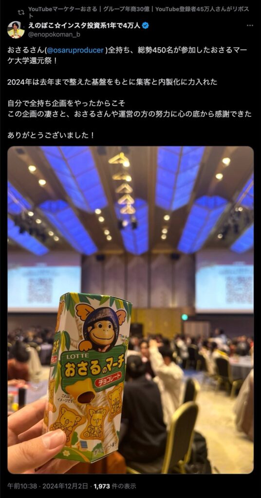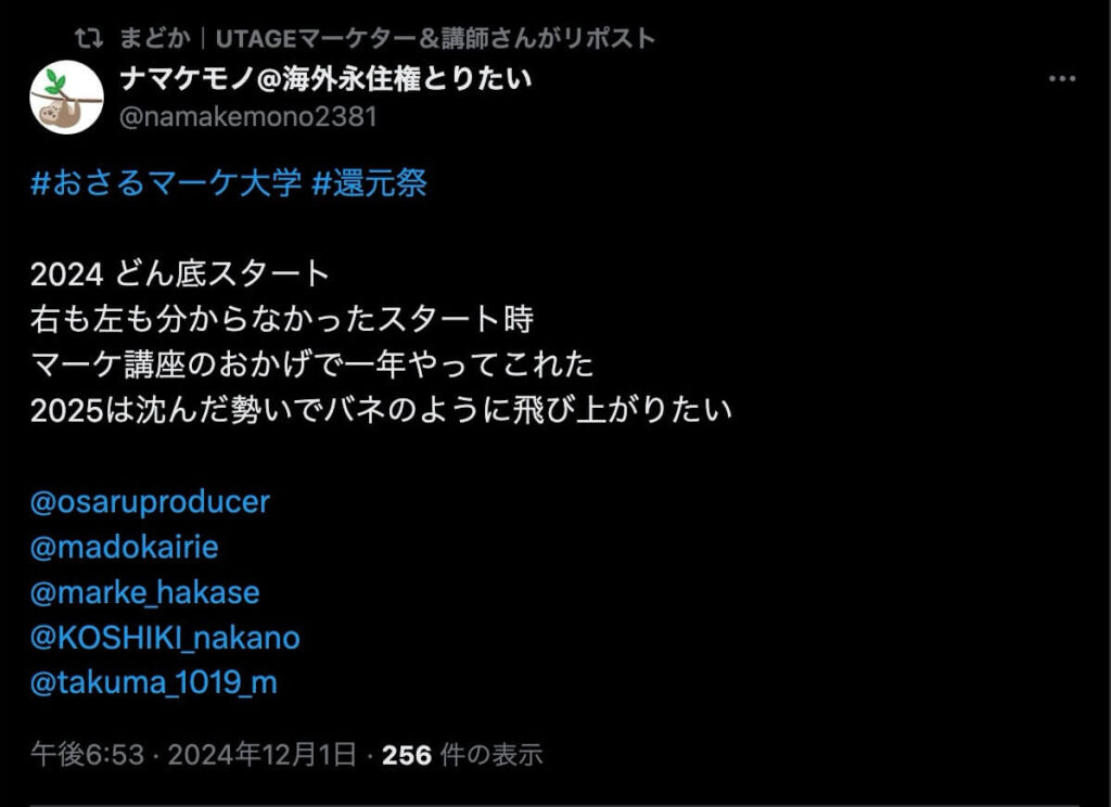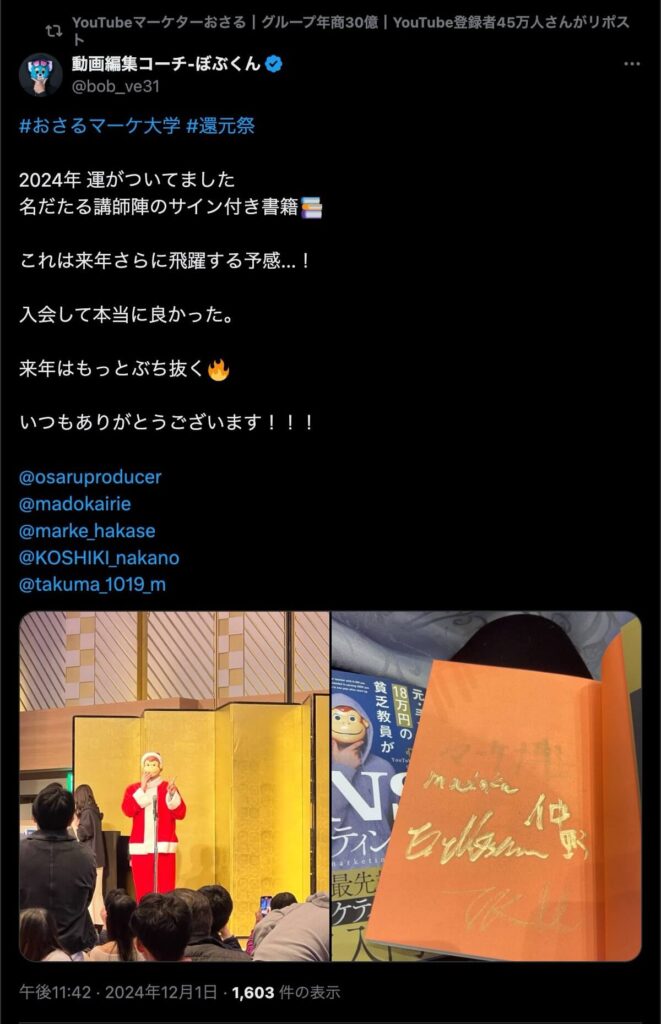 2024年12月1日、おさるマーケ大学の累計受講生数が5,000名突破したことを記念して「還元祭」と題した特別企画を開催しました。